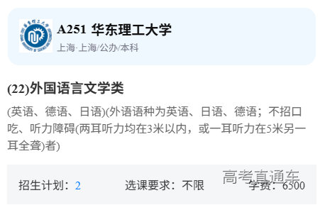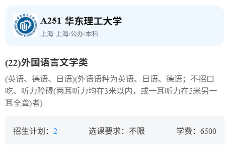 比如华东理工大学的外国语言文学类要求不招口吃、听力障碍。