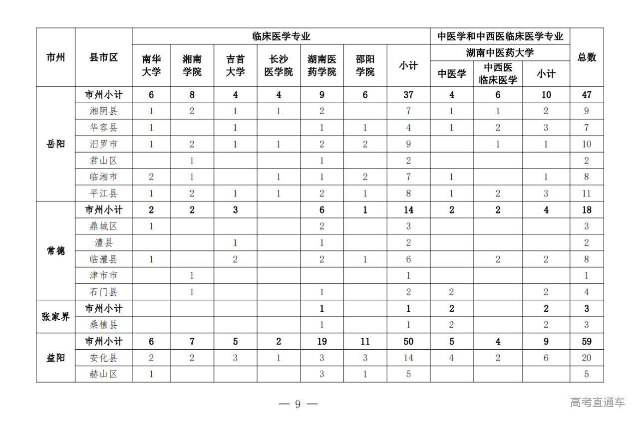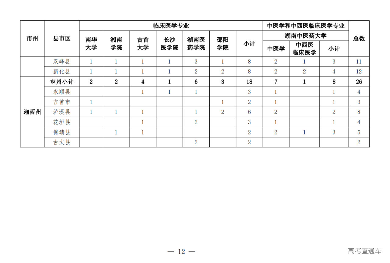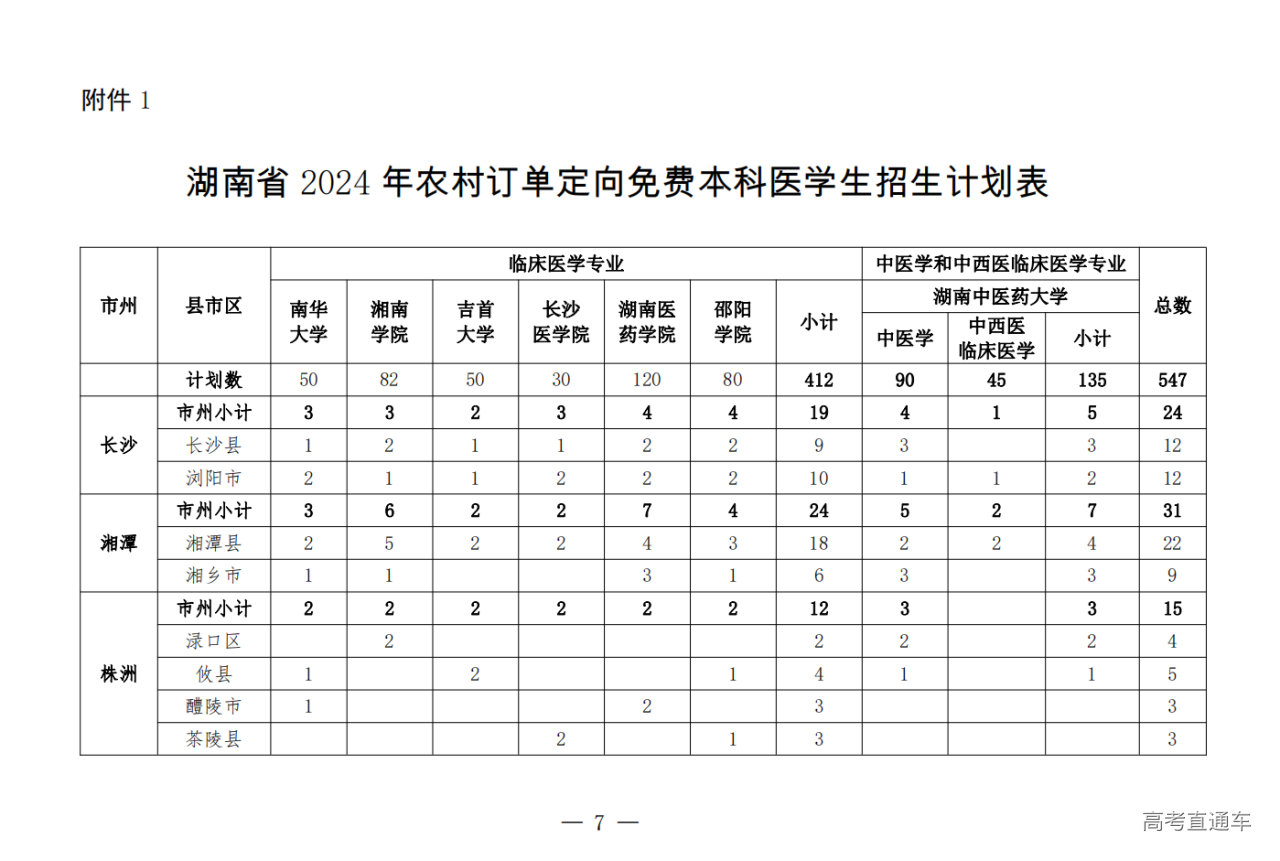 附件:1.湖南省2024年农村订单定向免费本科医学生招生计划表