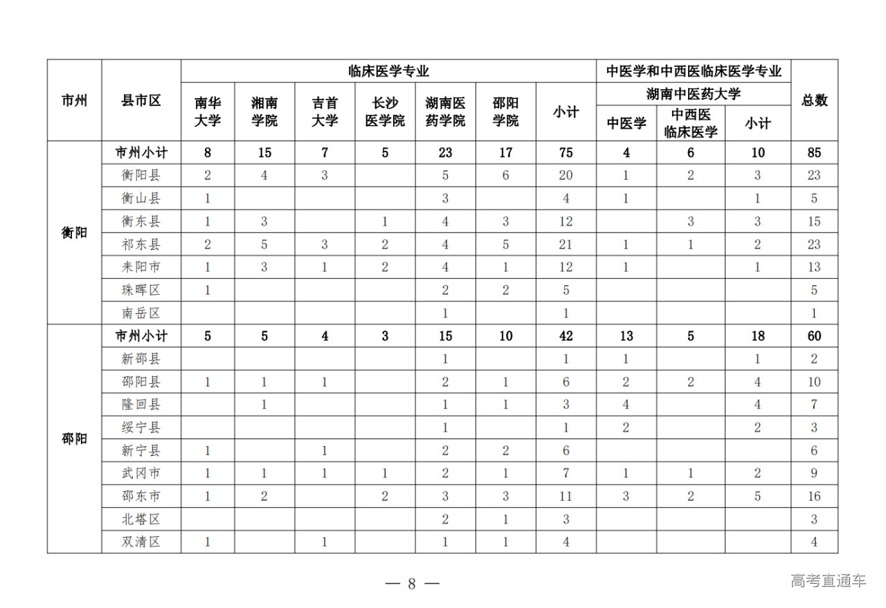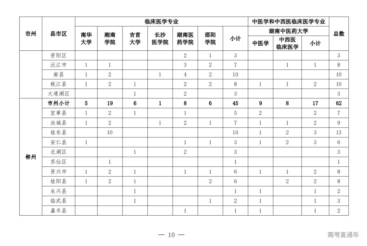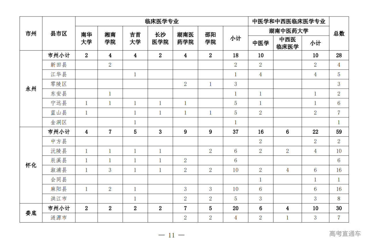 附件:1.湖南省2024年农村订单定向免费本科医学生招生计划表