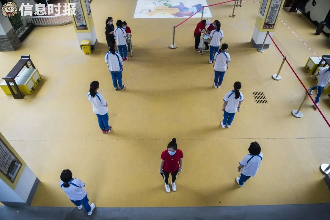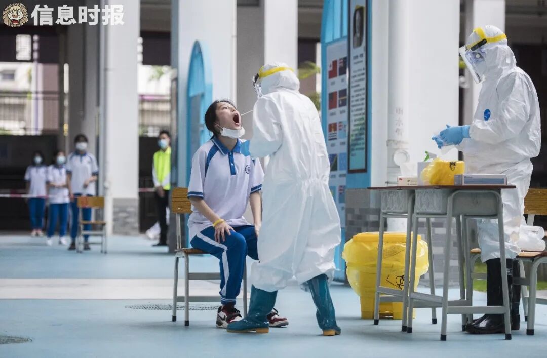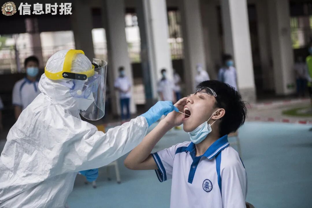 北京师范大学广州实验学校的门口,初三的学生在排队等待测温后进入校园。信息时报记者 陆明杰 摄2、采样以班级为单位,按照人员编号登记。学生们依次间隔排队走到学校架空层,登记核对个人信息,再领取条形码和采集试管,然后拉开间距等待“叫号”。老师们在一旁维持秩序,不断提醒保持1.5米以上距离、避免交谈。3、架空层设置了2个检测点,约有10名医务人员在现场对学生进行咽拭子采样。黄埔区红十字会医院副院长陆超鹏介绍,30秒左右就可完成一名学生的采样。这些标本将交由有资质的第三方机构进行检测,约24小时后可得知结果。医院将统一收集结果,再反馈给学校。北京师范大学广州实验学校里,工作人员在给需要进行核酸检测的学生进行取样。据了解,本次核酸检测实现高三、初三全体返校人员全覆盖,包括学生、教师、保安、厨工、清洁、绿化、食堂后勤服务人员等。黄埔区红十字会医院、广州开发区医院、黄埔区中医医院及各社区卫生服务中心到33所学校设点开展检测工作,并将于4月23日前全部完成,4月27日前得到检测结果。已完成全部37间学校近3000名教职员工核酸检测采样根据疫情形势变化和广州市关于疫情防控工作统一部署,荔湾区加大力度主动排查,全力保障辖区居民健康。4月17日-20日,累计核酸检测采样9179份。截至目前,3549份均为阴性,其他结果暂时未出。为保障辖区居民复学、出行安全,4月20日,荔湾区在真光中学、广州市第一中学、广州市第四中学分别设置采样点,组织对全区初三、高三教职员工进行核酸检测。当天已完成全部37间学校近3000名教职员工核酸检测采样,为首批学生复学安全提供保障。就刚刚,广州教育局发布了学生口罩购买的最新消息,先给大家划个重点:广州市教育局为让每一位返校学生有充足的口罩可佩戴,联合有关部门在“穗康”小程序的“校园专区”专设购买口罩功能,让同学们返校无忧,家长放心。该功能将于4月22日上午10:00正式上线试运行。目前购买对象仅为高三和初三学生或家长,其他学段的学生口罩购买功能,将根据返校时间陆续开放。通过“校园专区”购买口罩的学生和家长必须提前在该专区成功申领并绑定穗康“学生健康卡”,重启小程序后,点击进入校园专区“学生健康卡”→“申请购买口罩”即可登记购买,无需摇号,保证100%购买成功率。在线申请购买以10天为一个周期,自购买成功起10天内不能重复申请。目前学生每次可申请购买1份成人口罩套装,内含10个普通防护口罩和10个医用护理口罩,支付成功后3天内发货,快递到家。每天7:00—21:00都可以在线申请购买,订单登记后需在30分钟内完成支付,超时未支付则本次申请结束,可再次申请购买。
