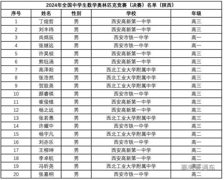 2024年第40届全国中学生数学联赛省队名单(陕西)