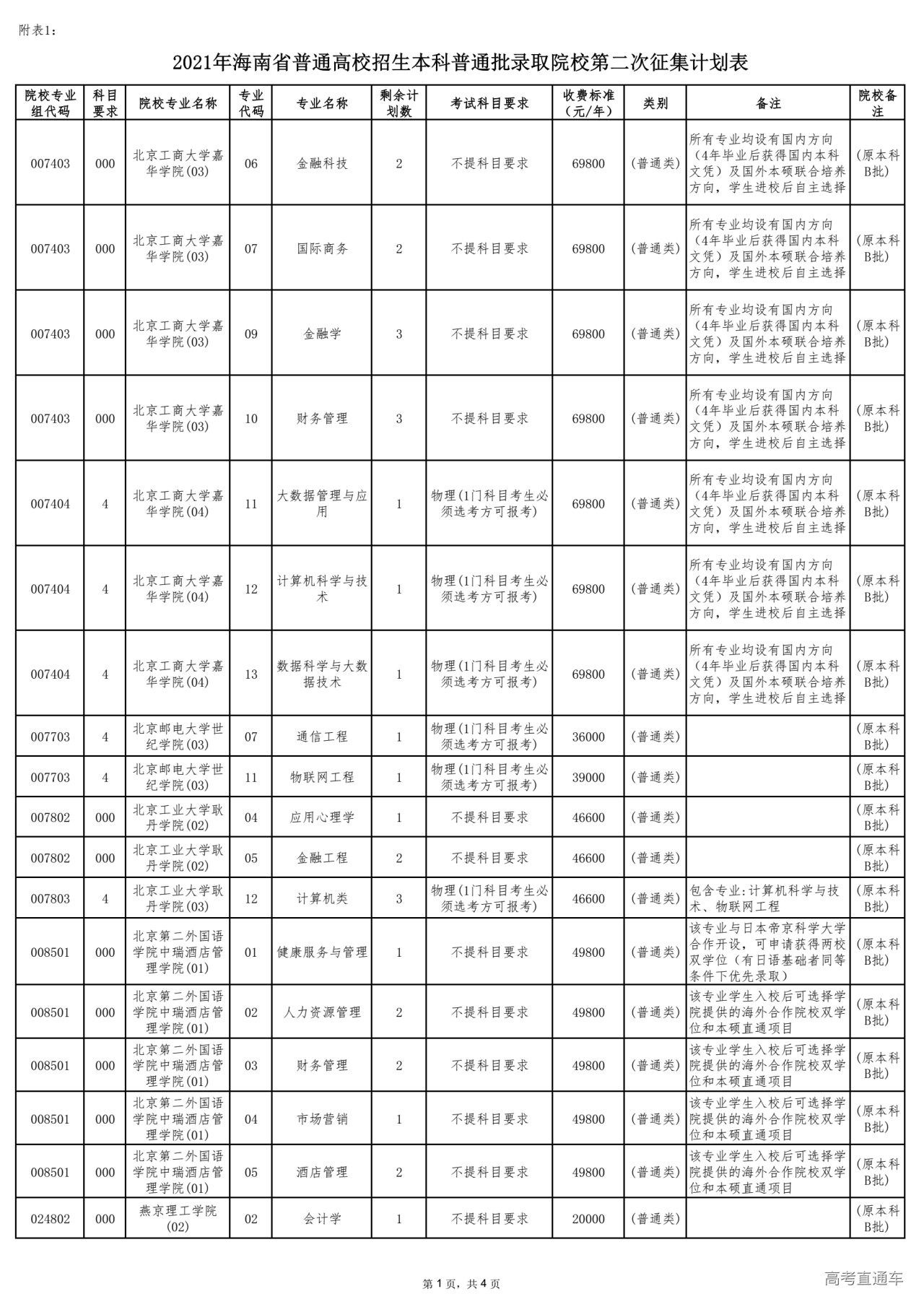 1.尚有剩余计划的院校专业组名称、专业名称、选考科目要求及剩余计划数详见附表1。