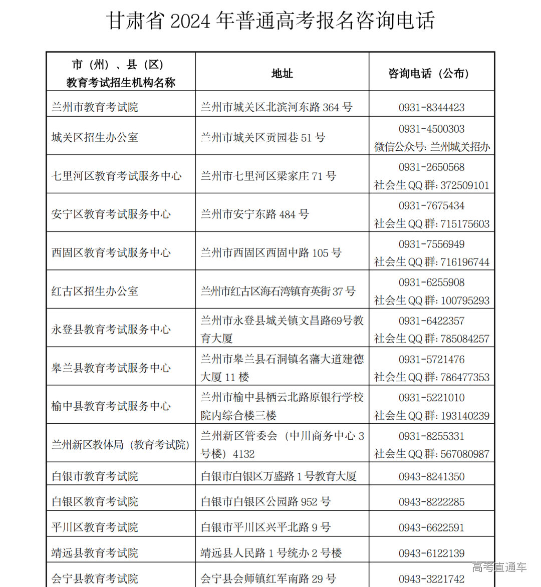 具有同等学力的考生和社会青年等报名参加普通高考的,本人须初中毕业满三年(截止到2024年8月31日),考生本人及其父亲或母亲或法定监护人常住户籍必须在甘肃,同时,本人初次户口登记在甘肃,且无外省迁移轨迹。由户籍所在县(市、区)教育考试招生机构受理其报名申请。报名前出具同等学力书面说明和初级中等教育毕业证明。