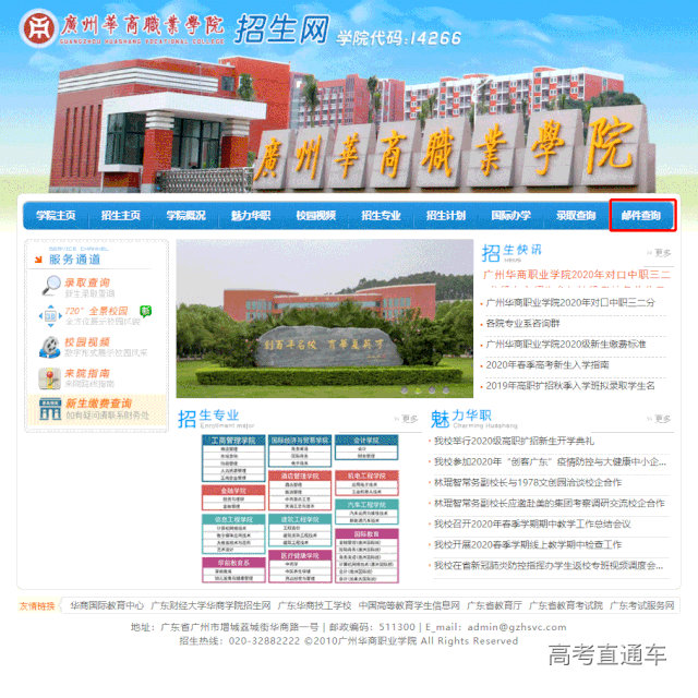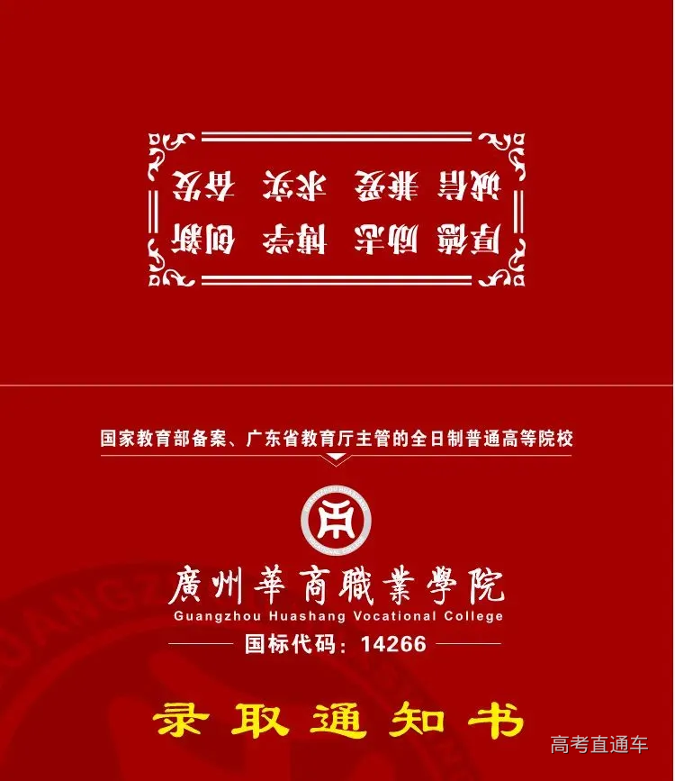 经过了纠结的志愿填报 又充满着对结果的期待 当得知被我校录取了的小伙伴 开始在我们的后台轰炸 “什么时候发录取通知书” 现在有一个好消息要告诉大家 广州华商的录取通知书已经寄出啦~ 即将收到人生中最重要的一份礼物 你的内心是不是激动&开心 在家等待的你,准备接收这个华商大礼包哦! 我们统一用中国邮政EMS寄送 为了能让小萌新们尽快收到通知书 我们的工作人员 将一份份录取通知书认真仔细打包 相信很快就会送到你们手中哦~ 勤劳的工作人员 在此, 小编要跟我们的工作人员说一声: 辛苦啦! 属于你的大学录取通知书 正加速向你奔来 小萌新们特别期待今年的通知书长啥样吧~ 那小编就提前带你看看 今年广州华商的录取通知书 TA会带来怎样的惊喜呢 ↓↓↓ 录取通知书 录取通知书大礼包 1.录取通知书 2.新生入学须知 3.交通银行卡 4.交通银行借记卡使用说明 5.新生用卡指南 6.大学新生应征入伍 7.广东省家庭经济困难学生认定分析表 8. 广东省家庭经济困难学生认定申请表 9.生源地信用助学贷款申请指南 10.高校本专科学生资助政策简介 11.校园一卡通 12.广州华商职业学院专升本招生简章 你是不是特别的期待拿到通知书啦~ 通知书正快马加鞭赶着与你相见哦! 或许还有些小伙伴还不太清楚 如何查询通知书物流状态 小编为你们整理了录取通知书邮寄进度的查询方法哦 方法一 关注微信公众号 “广州华商职业学院招生就业处” 在菜单栏处点击“互动查询” 选择“邮寄查询” 输入准考证号即可查询 邮政快递单号 再凭快递单号到邮政官网查询 物流信息 邮政查询网址 http://www.ems.com.cn/ 方法二 登陆广州华商职业学院招生办公室网站: http://zsb.gzhsvc.edu.cn 在导航栏中点击“邮件查询”进入查询系统 在邮件查询页面 输入准考证号(10位数)即可查询 邮政快递单号 再凭快递单号到邮政官网查询哦 方法三 在微信公众号查找 “EMS中国邮政查询速递物” 进入主页,点击“查件” 打开“录取通知书”进入页面 可直接输入邮件号,准考证号或者考生号