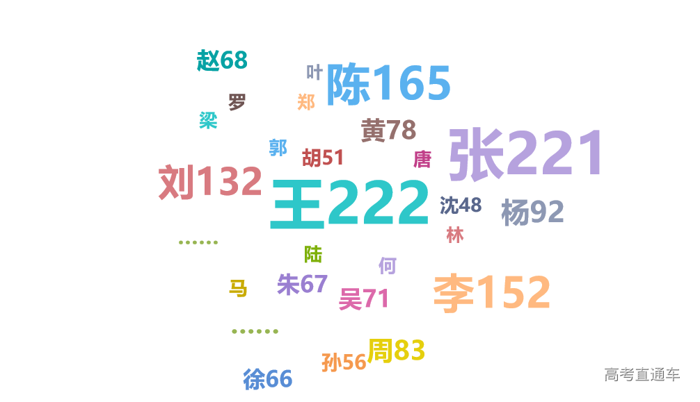 上海海洋大学2020级本科新生 包含春招生、秋招生、港澳台侨、插班生、 少数民族预科生、专升本生 共计3138人 男女比例协调 约为1:1 10个招生学院中 海洋文化与法律学院、外国语学院女生均占75% 工程学院男生占76% 分别为女生比例和男生比例的榜首 3183人 分布于7个学科门类和1个少数民族预科班 其中工学人数最多 最小年龄为15岁 最大年龄为33岁 其中17-20岁为人数较多的年龄段 2020级本科新生中 包含32个民族 大多数为汉族 “王”、“张”、“陈” 位列姓氏人数榜前三名 接下来,让我们一起来看看热门姓氏分布图 重名不可怕 混淆才尴尬 在此届新生大部队里 能在其中找到与自己同名的有30余人 届时小伙伴们可不要错看了自己的信息哟~ 最后 祝愿2020级全体本科新生 勇往直前,乘风破浪 在海大遇见更好的自己 学有所成,不负此行 !!!