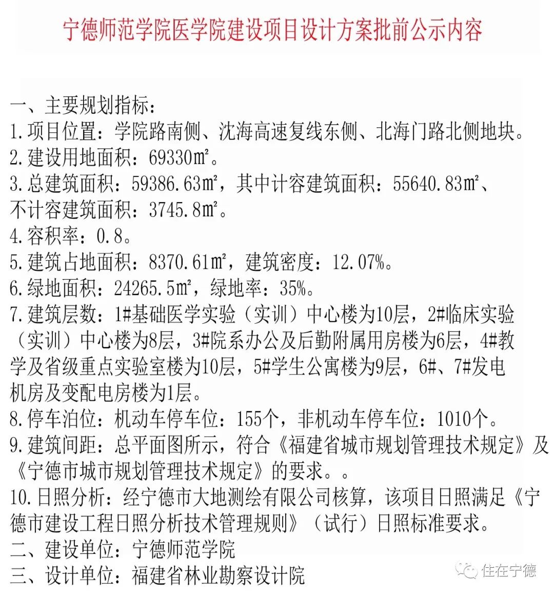 宁德师范学院医学院建设项目设计方案批前公示内容