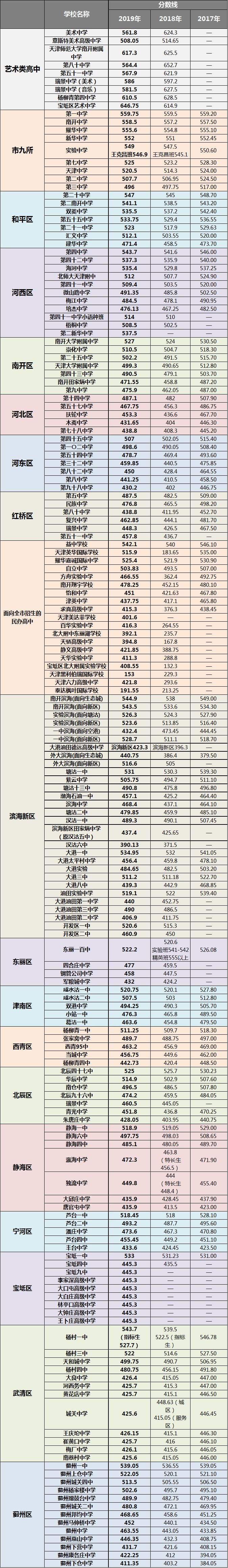 小编将2019年天津市十六个区的中考录取分数线及历年分数线对比汇总如下表。