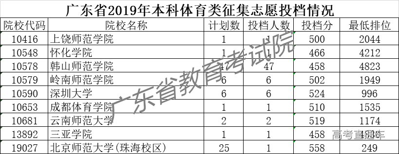 其他各类投档线详见:广东省2019年本科征集志愿投档情况(文/理/体育/美术/音乐/舞蹈/编导)