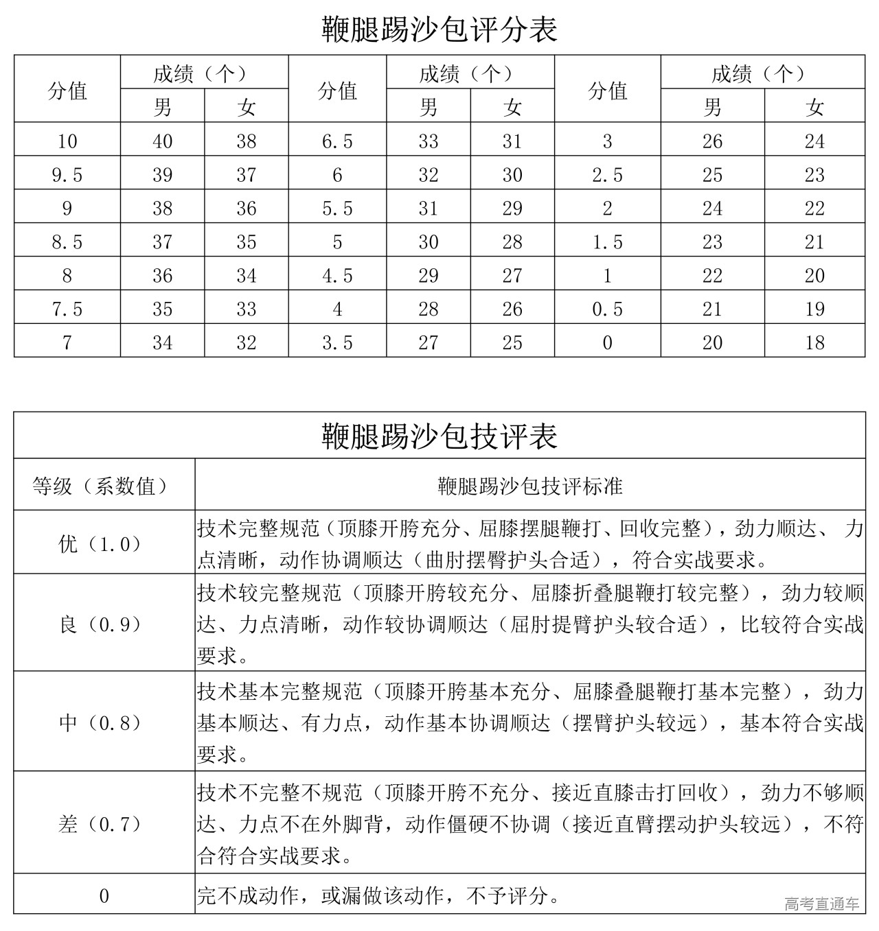 A.左、右鞭腿踢沙包评分标准(10分)