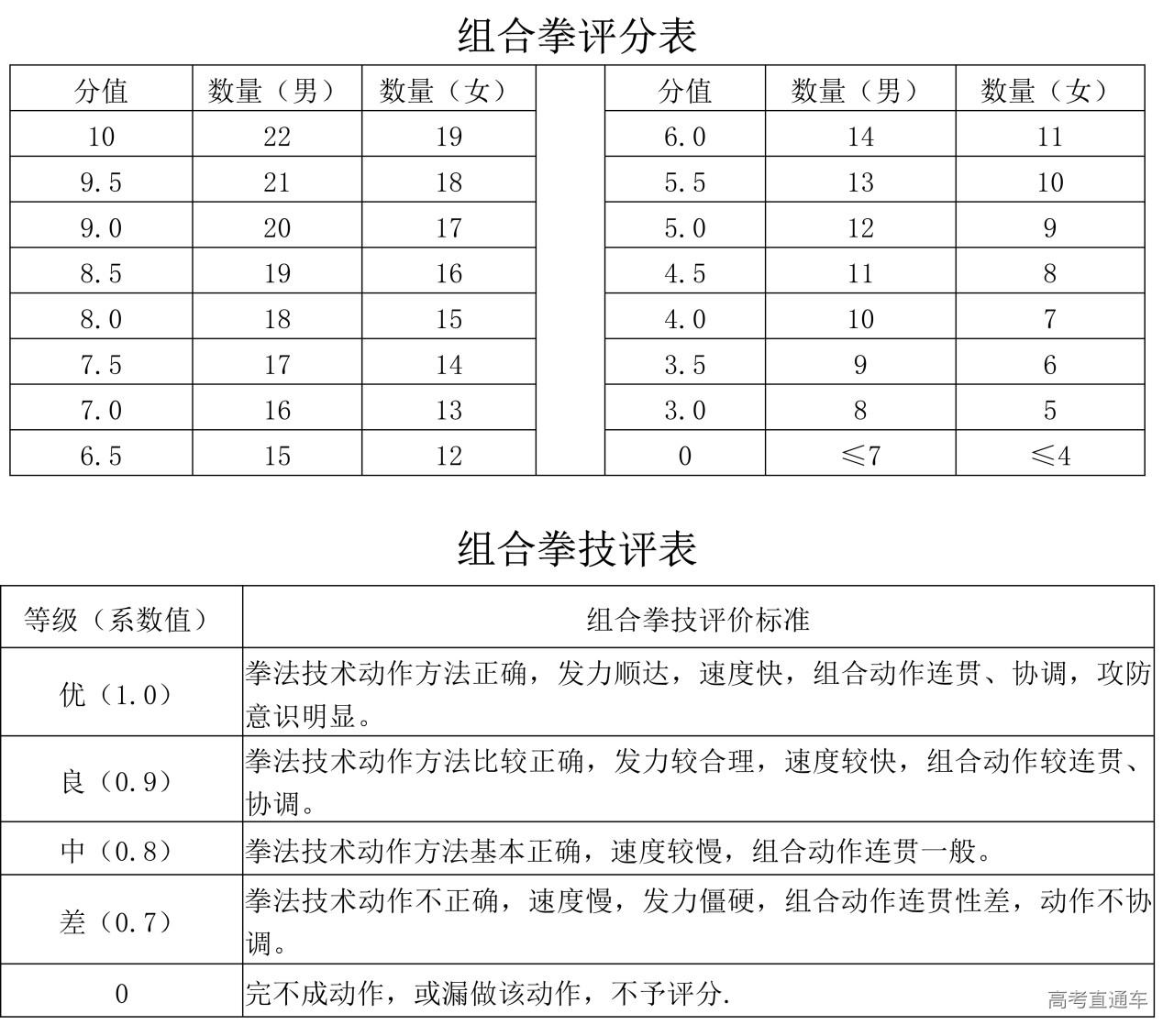 B.组合拳考试方法和评分标准(10分)