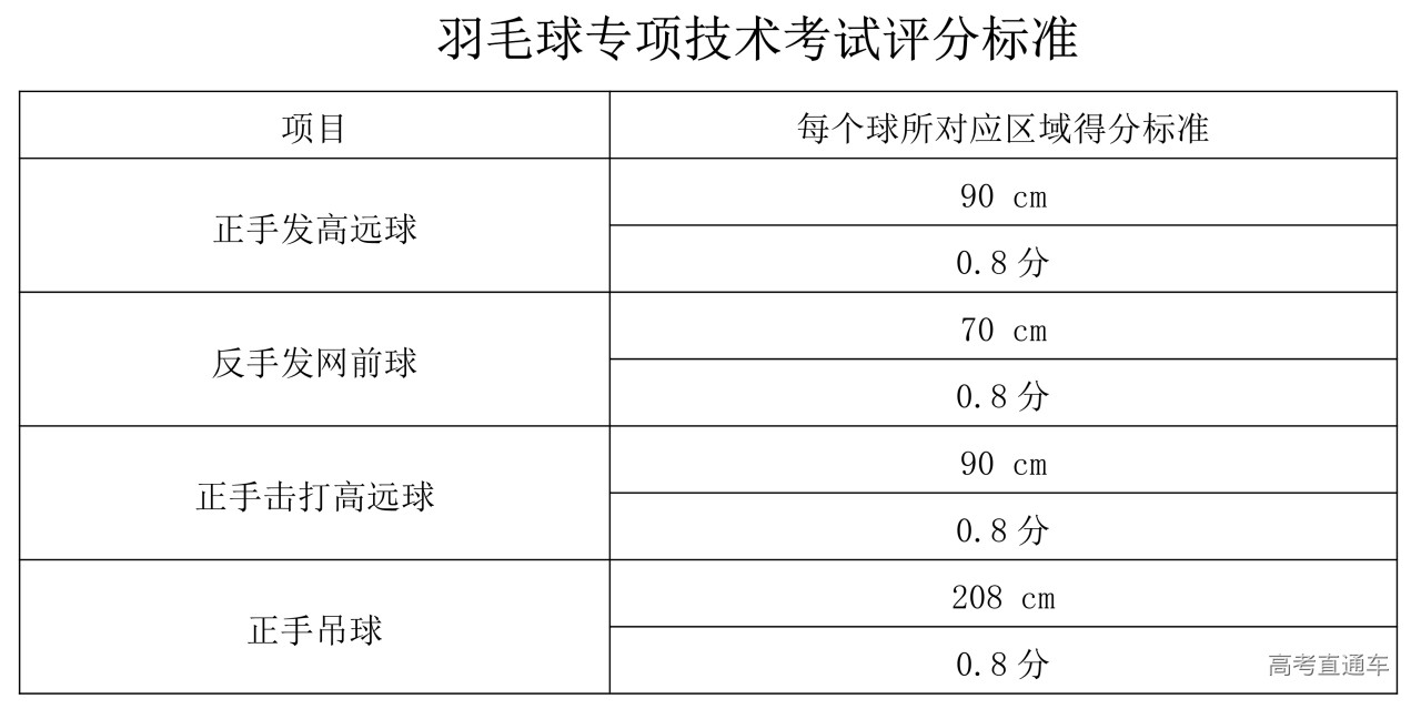 ①发高远球,满分8分。