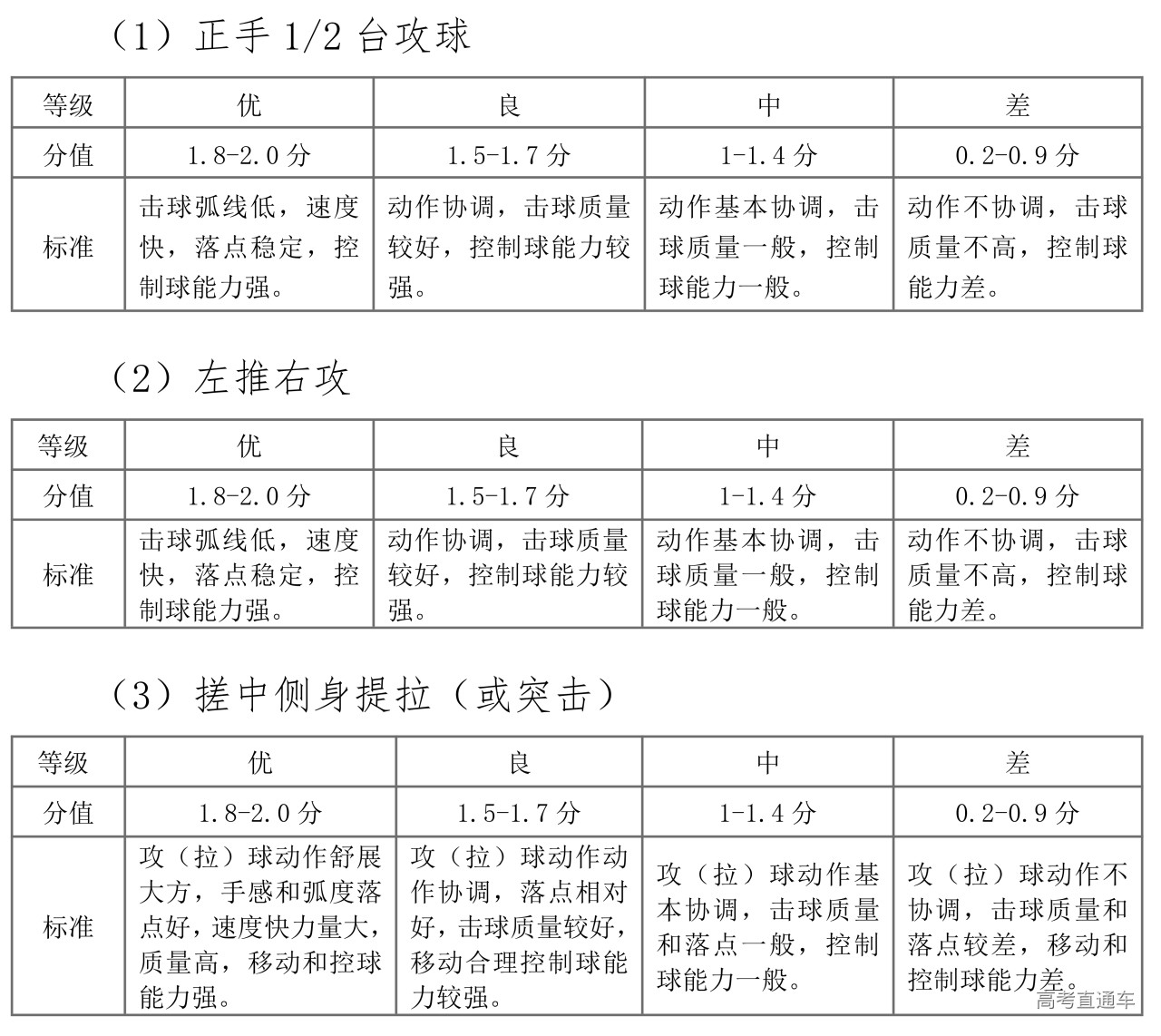 2.乒乓球定性评分表(共6分)