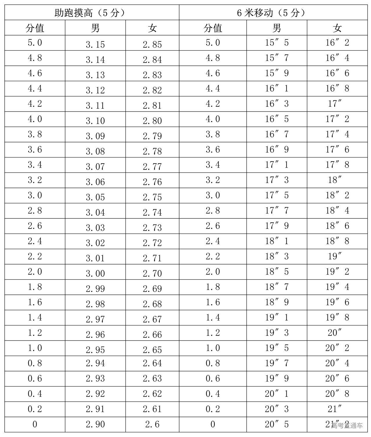 女生俯卧撑:20次为满分3分,每做一次为0.15分;