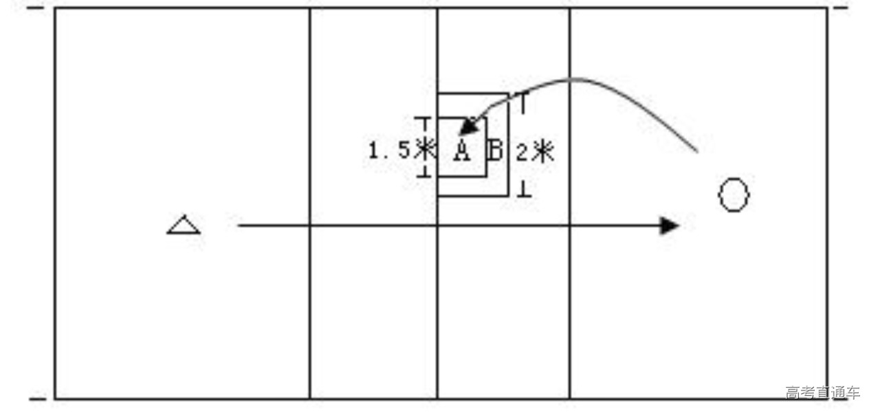 如图所示。由二传在3号位传球,考生在4号位自己给一传后助跑起跳扣球,连续扣球10次。要求扣球有一定力量,力量较小的轻拍扣球,则在相应得分中扣去0.3分。