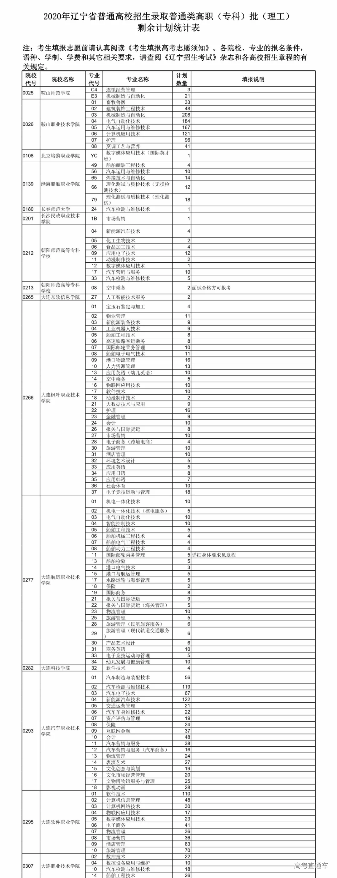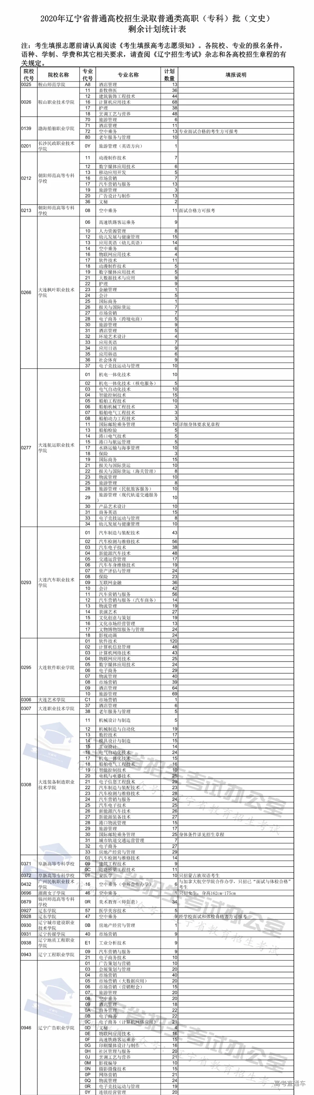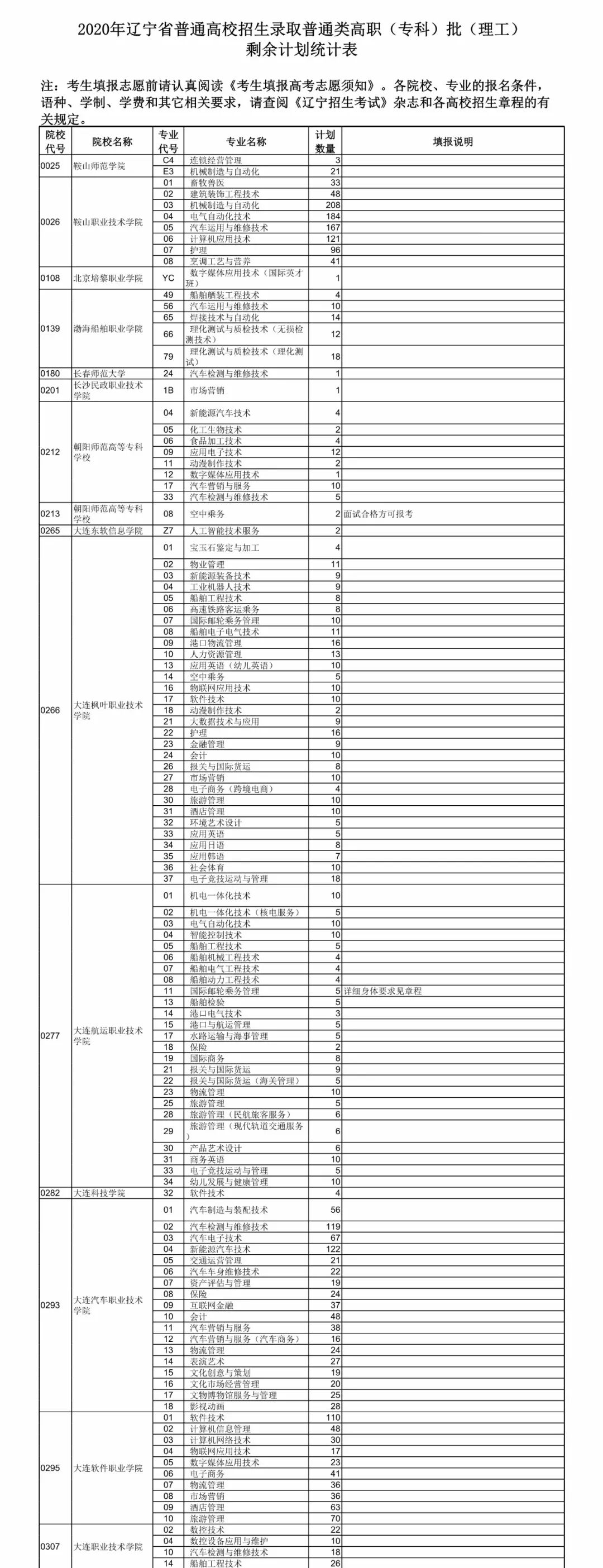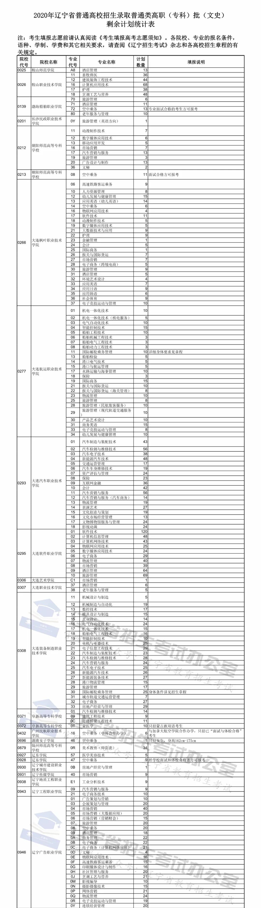 2020年辽宁省普通高校招生录取普通类高职(专科)批安排两次“征集志愿”补充录取。现就公布普通类高职(专科)批剩余计划和填报第一次“征集志愿”有关问题说明如下: