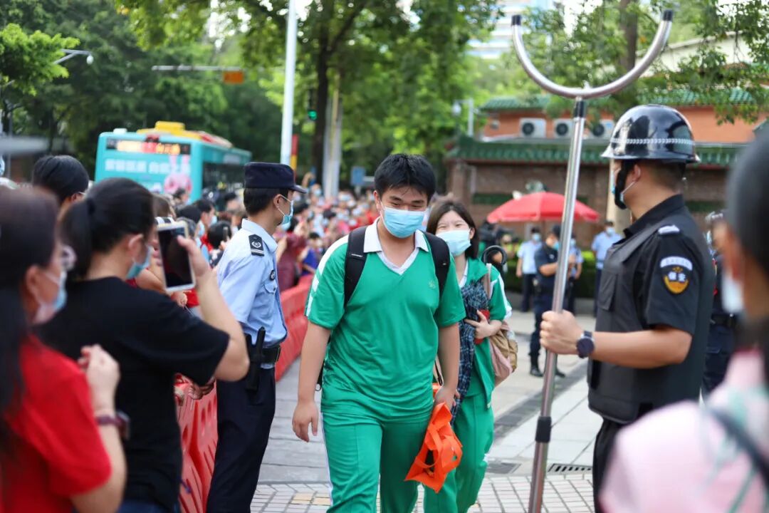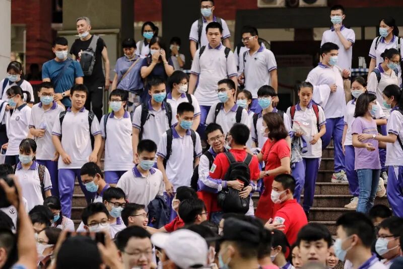 广州市执信中学考场,结束数学考试的考生正走出考场。南都记者 周宇 摄
