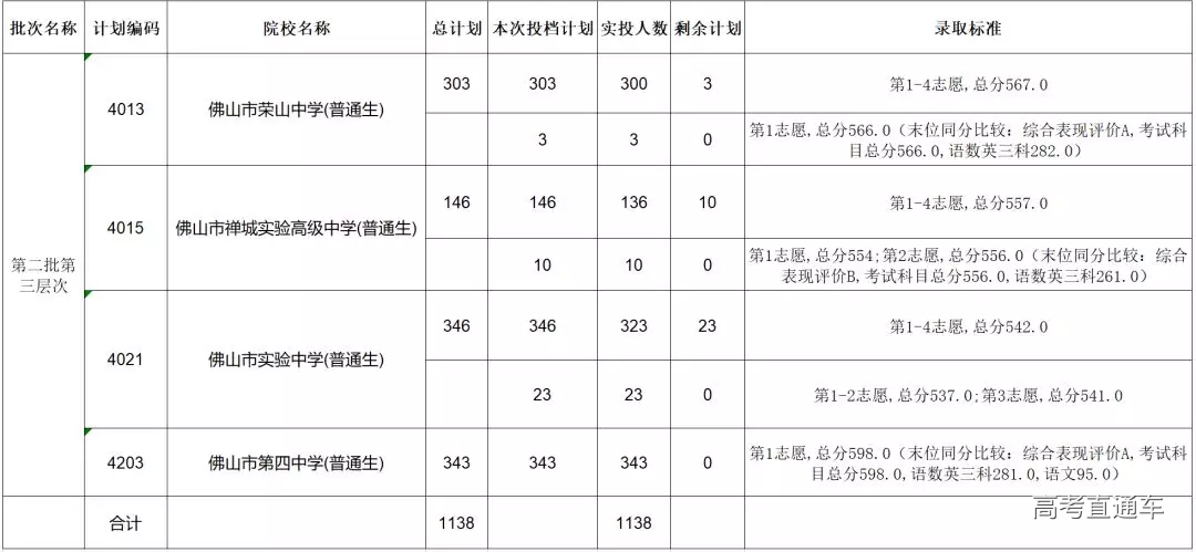 第二层次,佛山四中等4所学校指标生面向本区招生,各学校录取分数线控制在不低于该校第一批面向全市招生普通生最低录取分数线15分以内。未完成计划转入第三层次招生。
