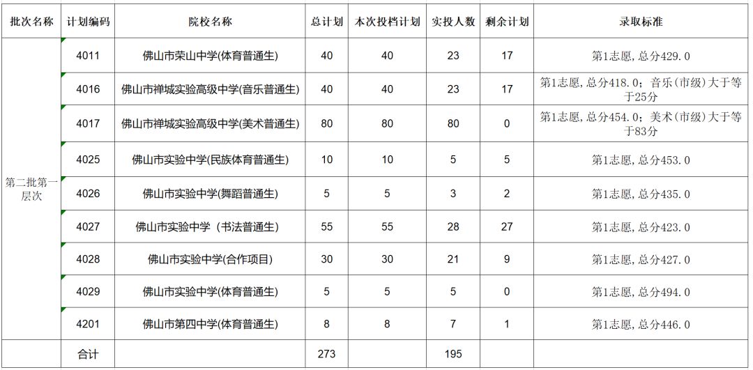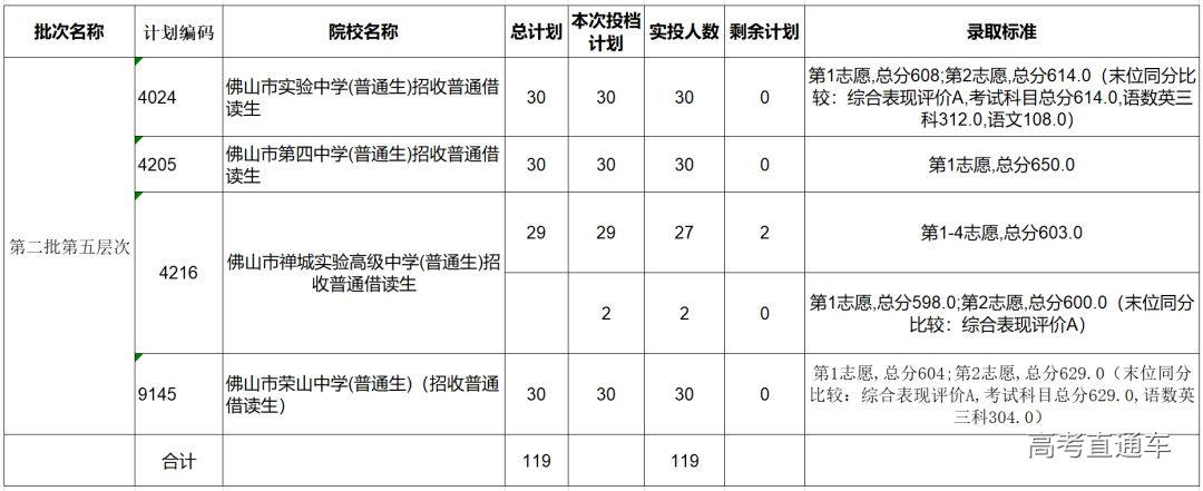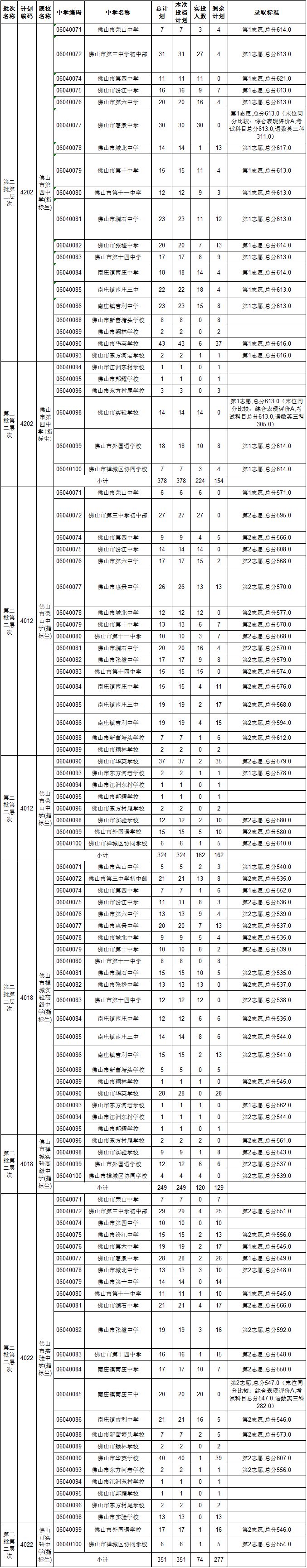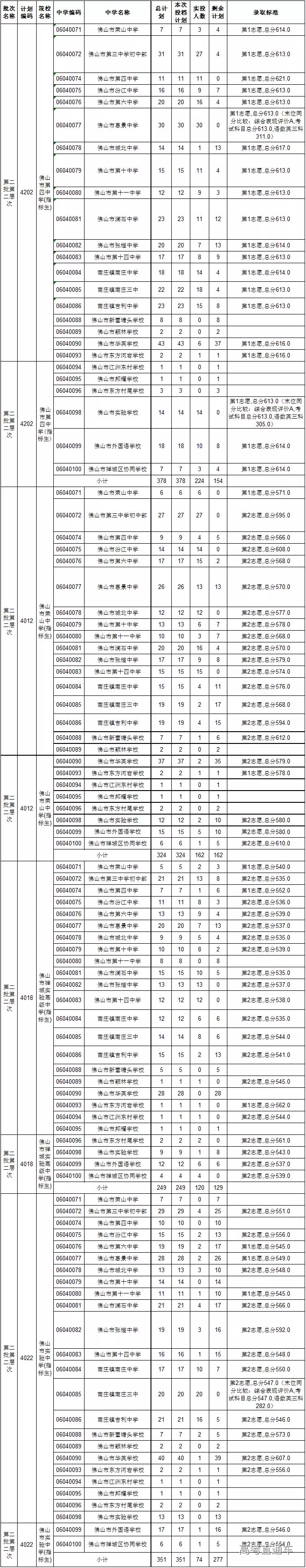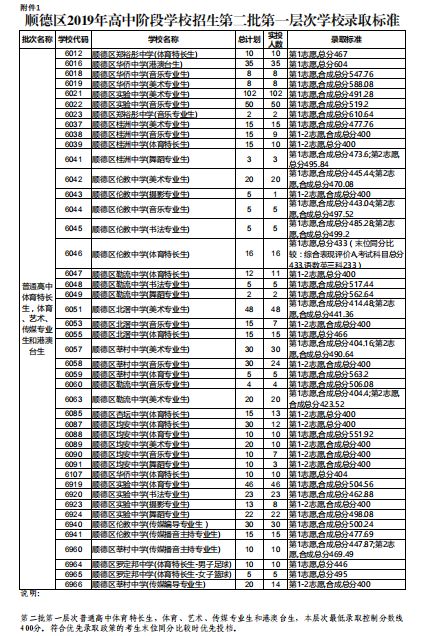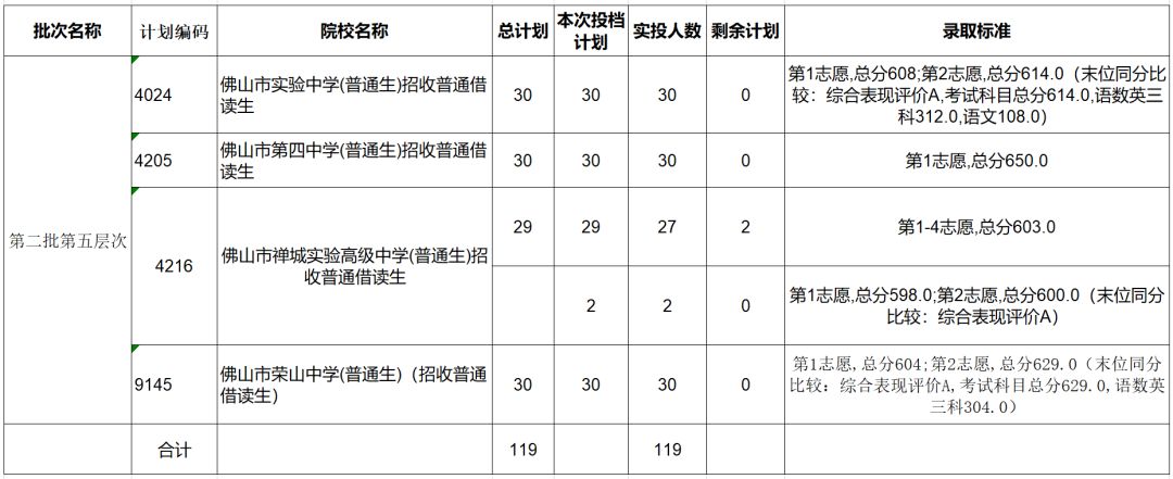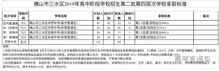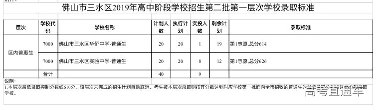 南海区2019年高中阶段学校招生第二批招生学校各层次的投档分数线和录取标准如下: