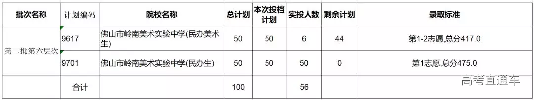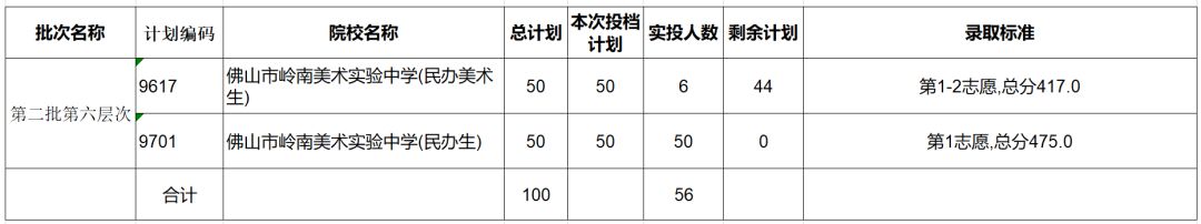 第六层次,佛山市岭南美术实验中学民办生及美术民办生面向本区招生,其最低录取控制分数线413分。