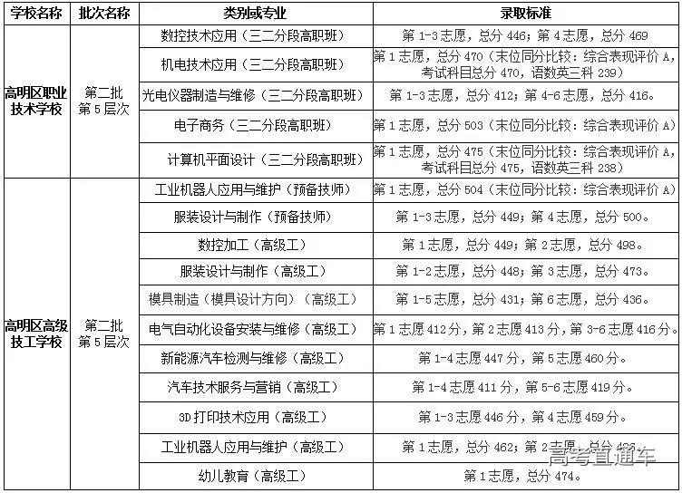高明区2019年中考招生中职学校第二批第5层次最低录取控制分数线及录取标准: