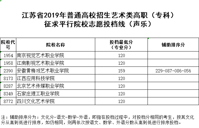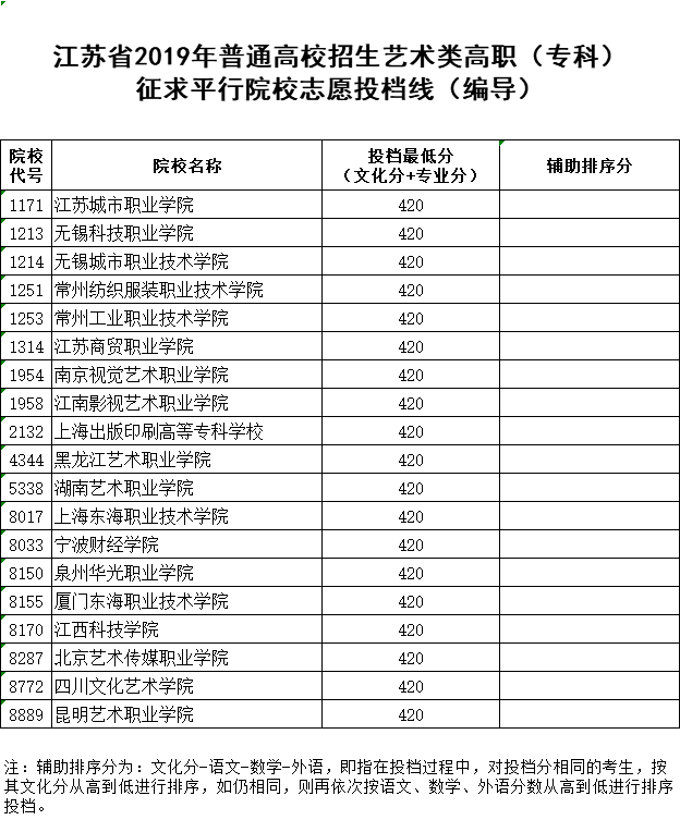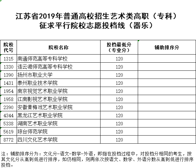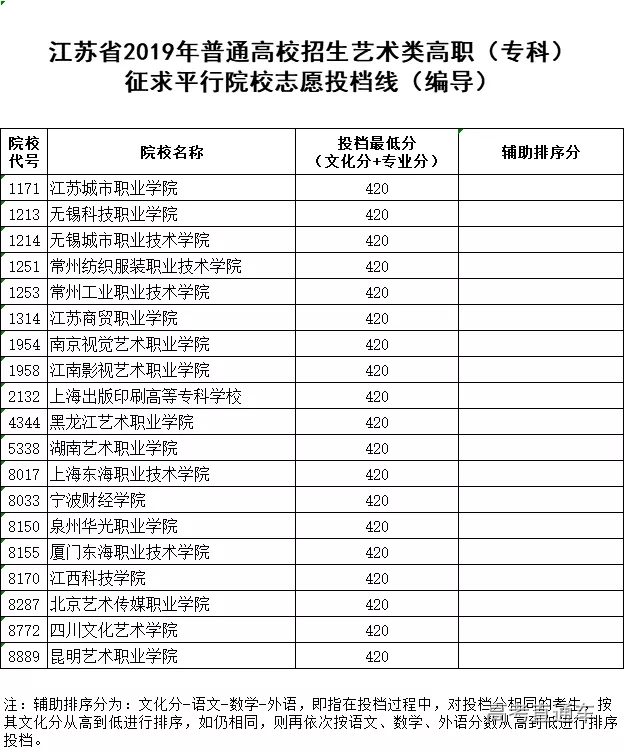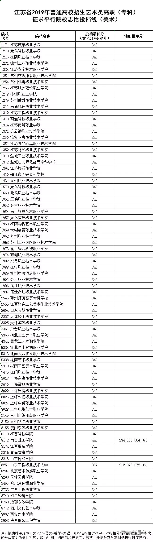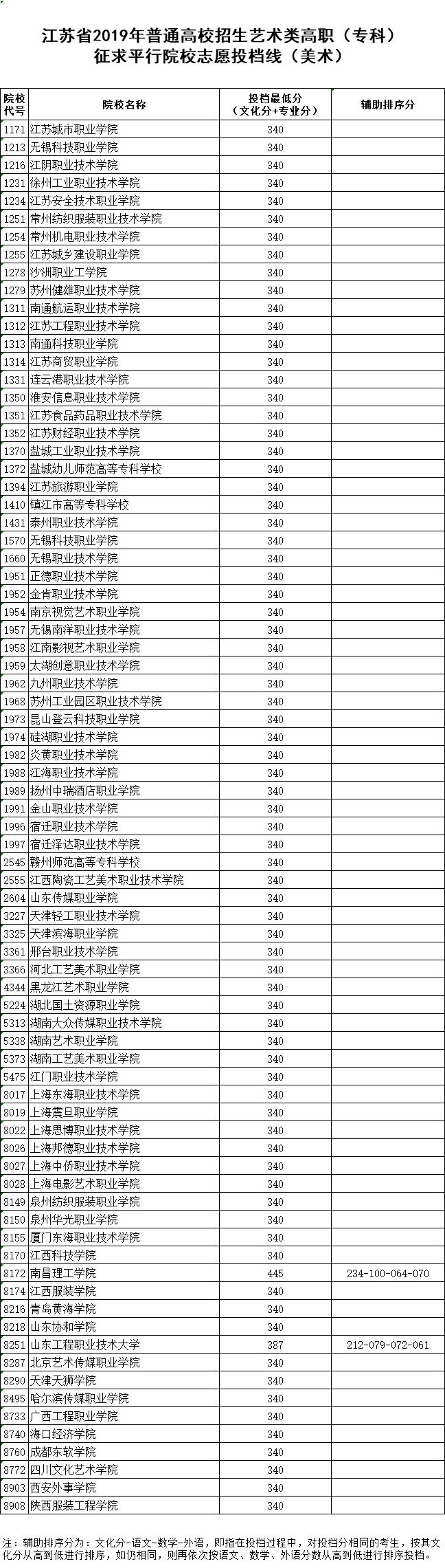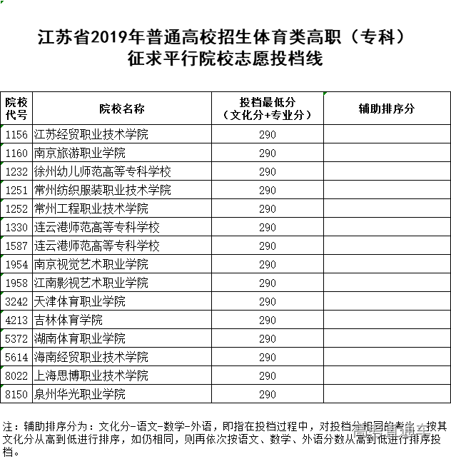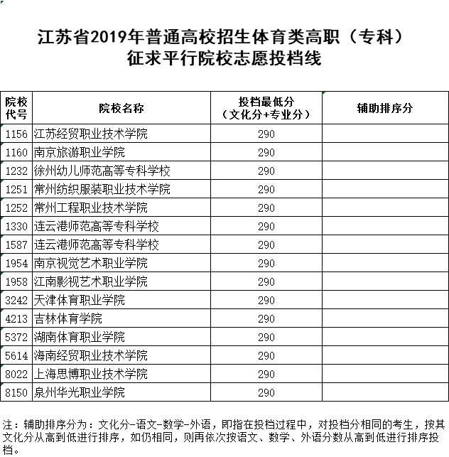 江苏省2019年普通高校招生体育、艺术类高职(专科)征求平行院校志愿投档线