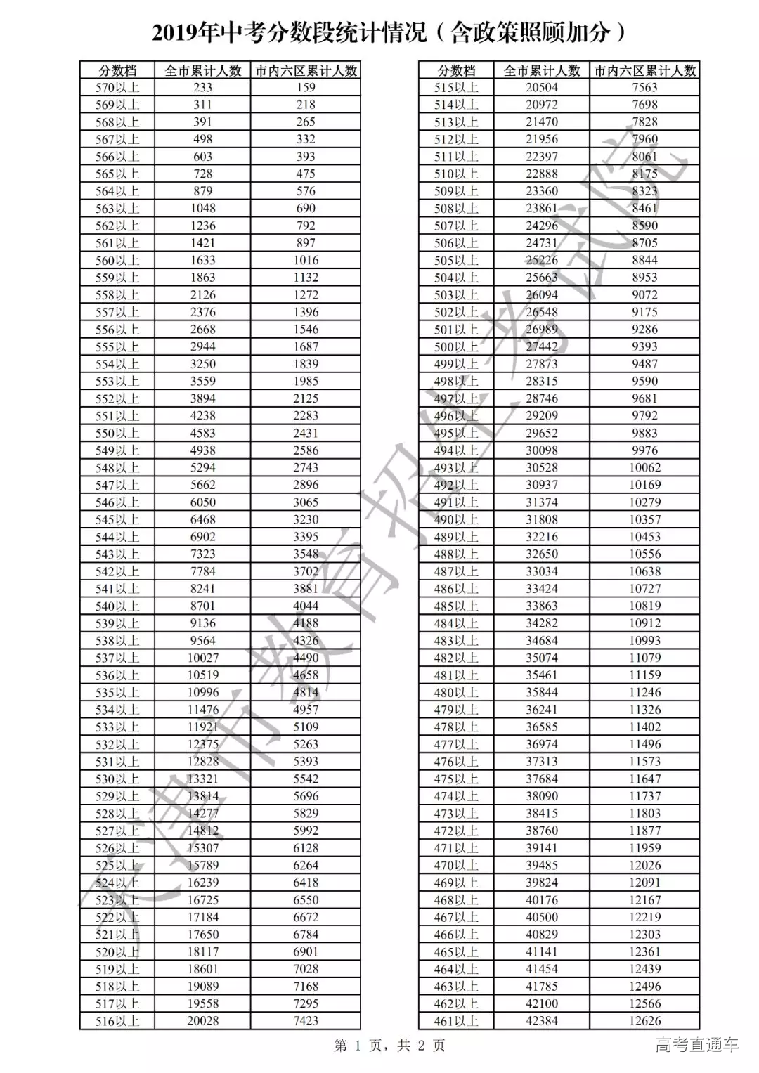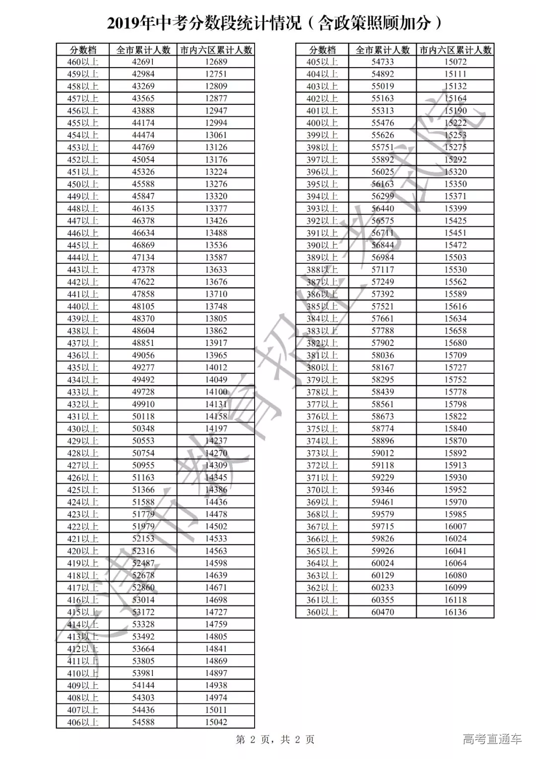 考生可登录招考资讯网(www.zhaokao.net),使用本人初中毕业生学业考试准考证上的考生号、座位号,进入中考查分系统免费查询成绩。 考生可到报名学校免费领取本人的考试成绩单。 根据教育部规定,考试成绩公布后,各中学及工作人员不准张贴海报、悬挂横幅,炒作中考状元和升学率。 考生可根据《2019年天津市高级中等学校招生报考指南》公布的招生计划填报志愿。未经市中招办公布的招生学校和招生计划,一律不安排在津招生。非官方渠道获取的《招生计划》、资料及信息,不能作为考生填报志愿和高级中等学校招生录取的依据。 2019年中考分数段统计情况 (含政策照顾加分)