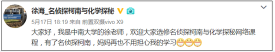 徐海老师本人也在微博上调侃称:有了名侦探柯南,妈妈再也不用担心我的学习。
