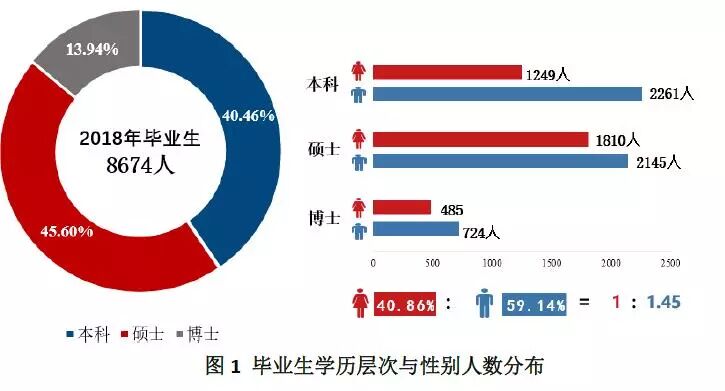 学校2018 年毕业生共8674 人(不含港澳台及留学生),其中,博士生1209人,占毕业生总人数的13.94% ;硕士生3955 人,占毕业生总数的45.60%;本科生3510 人,占毕业生总数的40.46%。