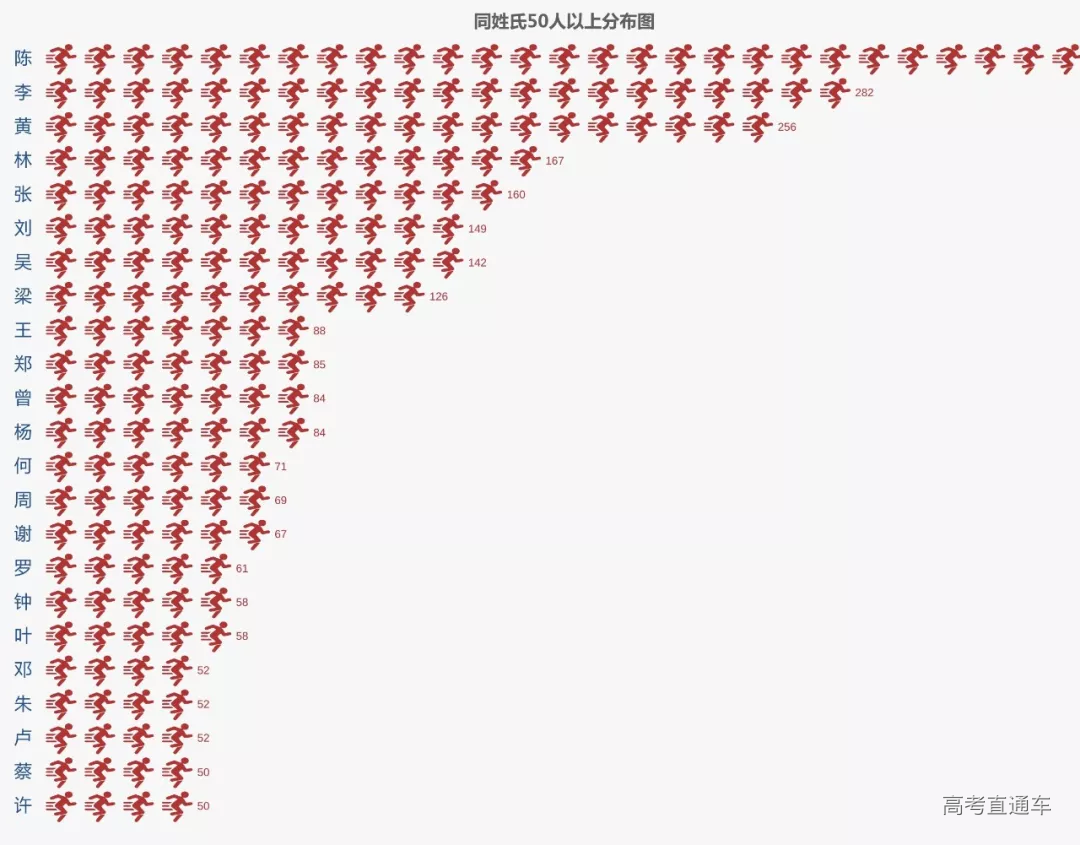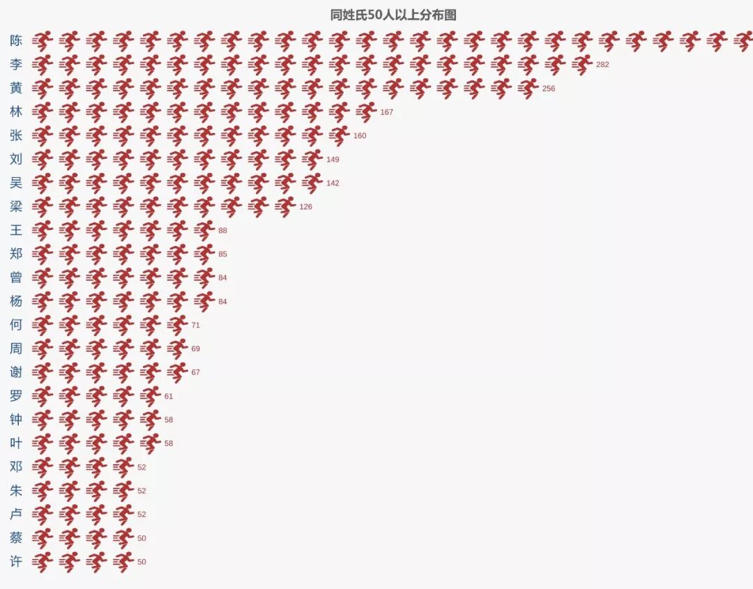 今年有4000多名新生加入培正这个大家庭中,总共有上百个姓氏。“陈”家300余人,以绝对的优势独占鳌头,成为新一届培正人中占比例最高的姓氏。希望来年有姓氏可以超过“陈家”。