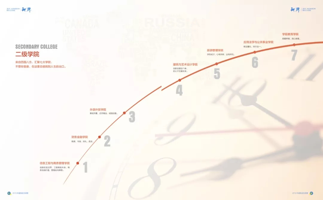 他们分别是信息工程与商务管理学院、外语外贸学院、财务金融学院、建筑与艺术设计学院、旅游管理学院、应用法学与公共事业学院、学前教育学院。