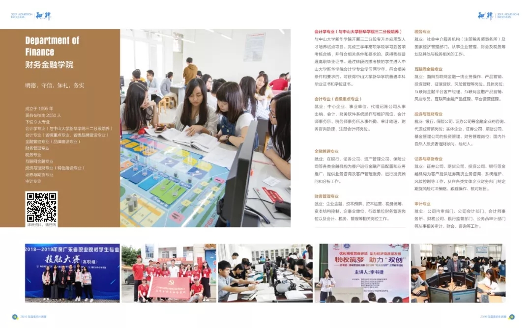 我校共有28个专业(群),涵盖经济学、工学、法学、管理学等十大学科门类,拥有报关与货运、会计(注册会计师)两个省级重点专业,以及“金融管理与实务”、“工商企业管理”、“建筑装饰工程技术”、“商务英语”、“计算机网络技术”“酒店管理”等品牌专业。