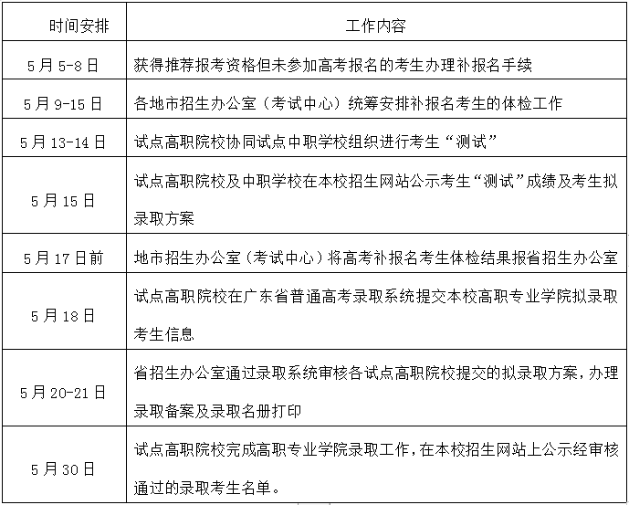 为全面贯彻全国教育大会和《国家职业教育改革实施方案》(国发〔2019〕4号)精神,根据《广东省教育厅关于做好2019年高职专业学院自主招生试点工作的通知》(粤教考函【2019】40号)文件决定,2019年由我省部分公办高职院校会同办学水平及社会认可度较高的国家、省示范性中职学校设立“高职专业学院试点班”,开展“推荐+测试”自主招生试点工作。