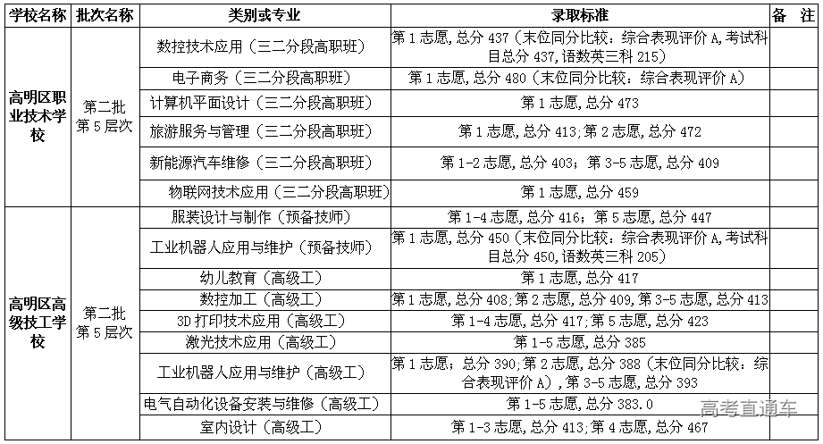 高明区2020中考招生中职学校第二批最低录取控制分数线及录取标准