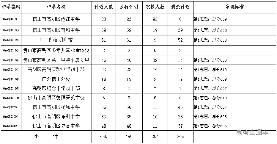 2020年佛山市禅城区高中阶段学校招生第二批最低录取控制分数线及学校录取标准公布!
