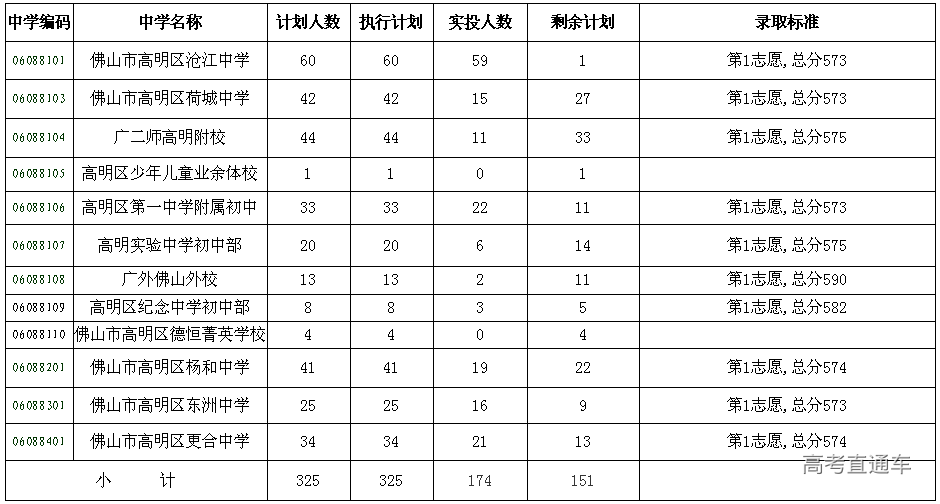 高明区2020年中考招生普通高中最低录取控制分数线及录取标准