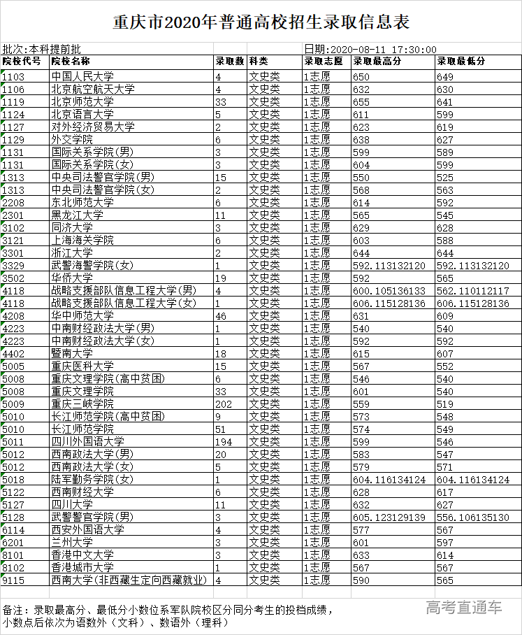 注:录取最高分、最低分小数位系军队院校区分同分考生的投档成绩,小数点后依次为语数外(文科)、数语外(理科)。