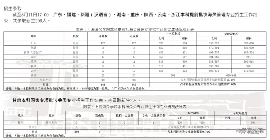 来源:高考直通车综合自各省教育考试院、各高校招生网