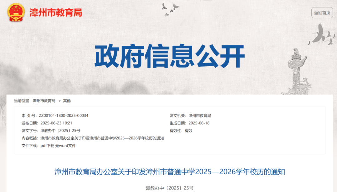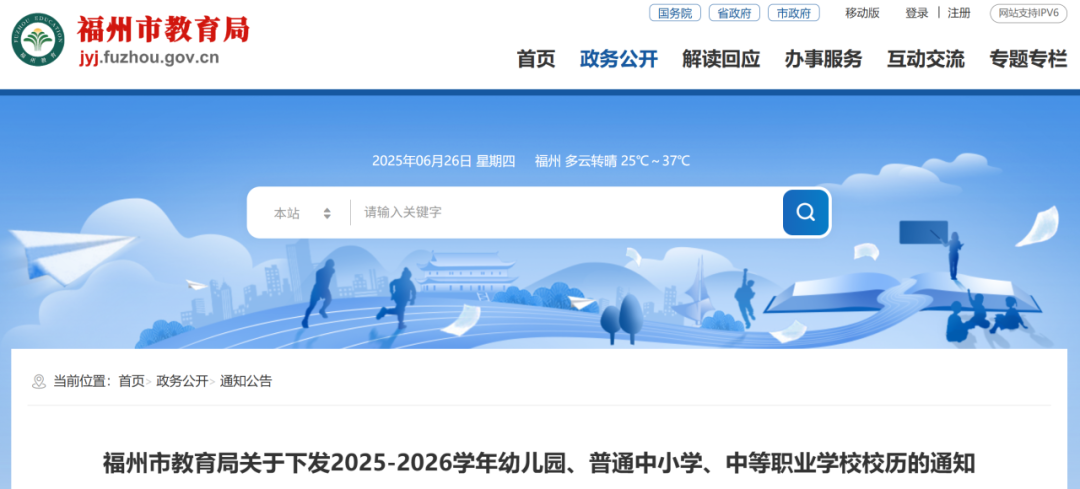 点击查看>>福州市教育局关于下发2025-2026学年幼儿园、普通中小学、中等职业学校校历的通知