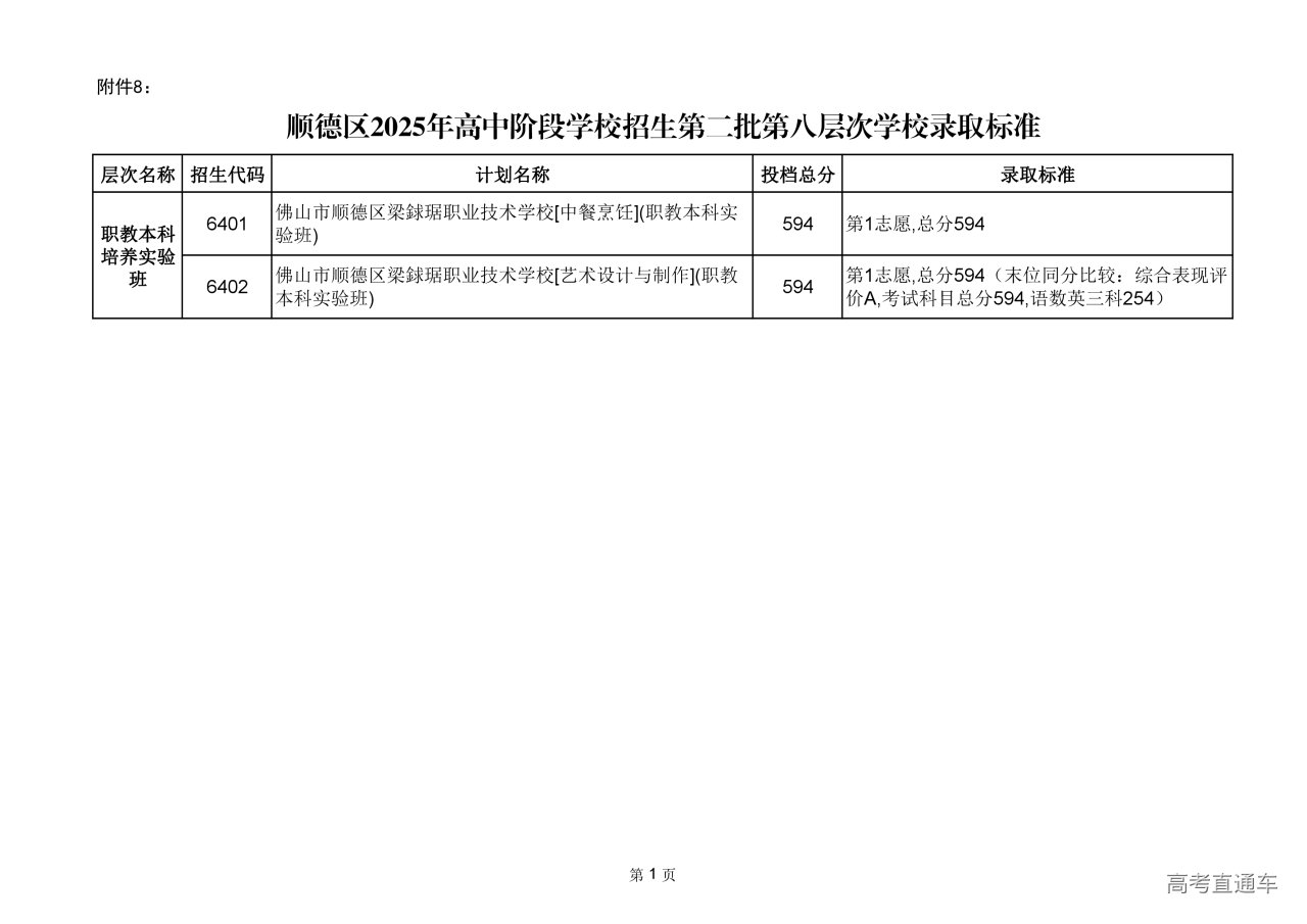 附件8:顺德区2025年高中阶段学校招生第二批第八层次学校录取标准.pdf