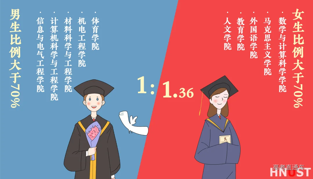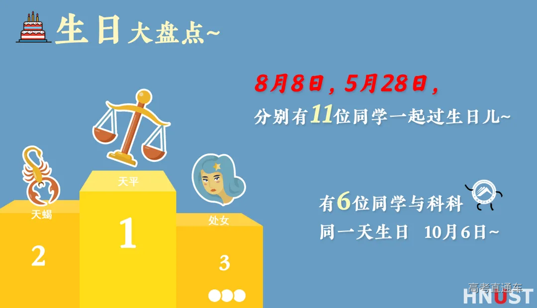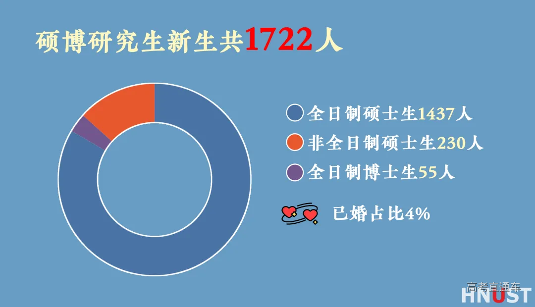 今年 科科迎来了1722名研究生萌新 其中硕士生1667人 博士生55人 据小编了解已婚仅占比4% 男女比例 从萌新们性别来看 男生730人,占比42.4% 女生992人,占比57.6% 整体男女比为1:1.36 那么问题来了~ 男女比例TOP5的学院有哪些呢? 看官莫急!科科立马为你揭晓 温馨提醒:大家在专心学习、提升专业能力的同时,也可与不同学院同学加强交流,涵养跨学科素养~ 各学院新生人数 各学院新生人数排行榜放榜! 教育学院、资源环境与安全工程学院 商学院、人文学院 机电工程学院稳居前5! 教育学院以160人脱颖而出,夺得桂冠! 将会有越来越多的教师小姐姐、小哥哥 走上教师岗位发光发热 年龄分布 从年龄分布上看 1998年出生的虎娃队伍庞大! 90后成为科研大军的主力 硕士生最小18岁,最大43岁 博士生最小23岁,最大45岁 求学路上,年龄永远不是阻碍~ 生日、星座大盘点 10月6日是科科71岁生日啦~ 今年能与6位研究生萌新一起庆生~ 8月8日和5月28日 一定是一个特殊的日子 有11位萌新们同一天出生 对有缘的那个TA说一句“生日快乐!” “每个人都有属于自己的星星” 今年的研究生新生中 天秤座、天蝎座、处女座 稳占星座榜TOP3 在科大,你能找到属于你的那一颗吗? 相同姓氏 今年,小李荣登姓氏榜榜首! 你室友和同学是李同学 张同学和王同学的概率会很大 还有下面这些姓氏你有听过吗? 覃(qín)、戎(róng)、危(wēi) 扈(hù)、蹇(jiǎn)、边(biān) 池(chí)、卜(bǔ) 葸(huì)、谌(chén) 生源地区 2020级研究生小萌新 分别来自祖国的大江南北 其中,省外生源人数 河南、山东、广东 安徽、湖北位列TOP5 跨越千山万水 你会不会在学校里遇到自己的老乡呢?