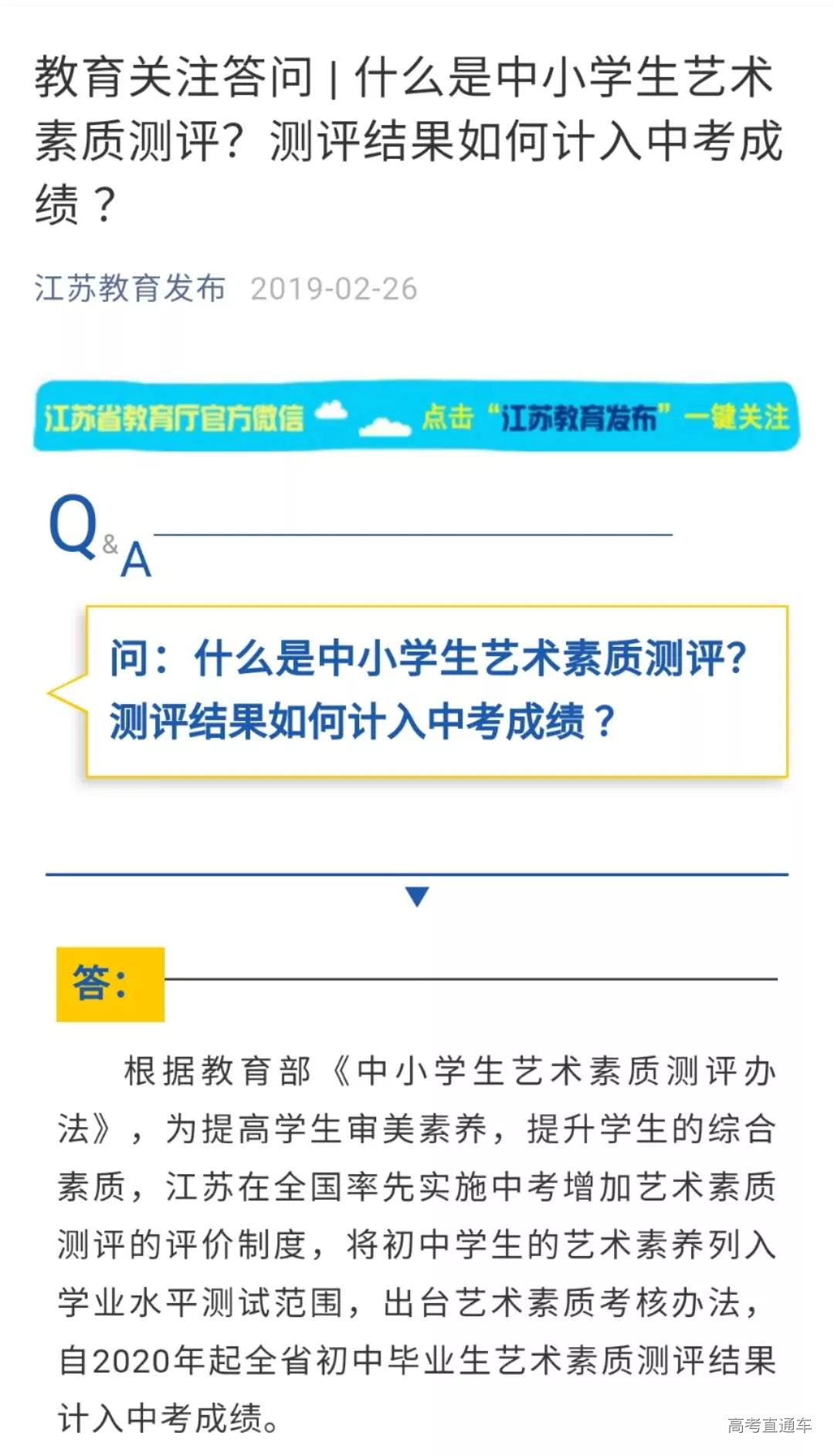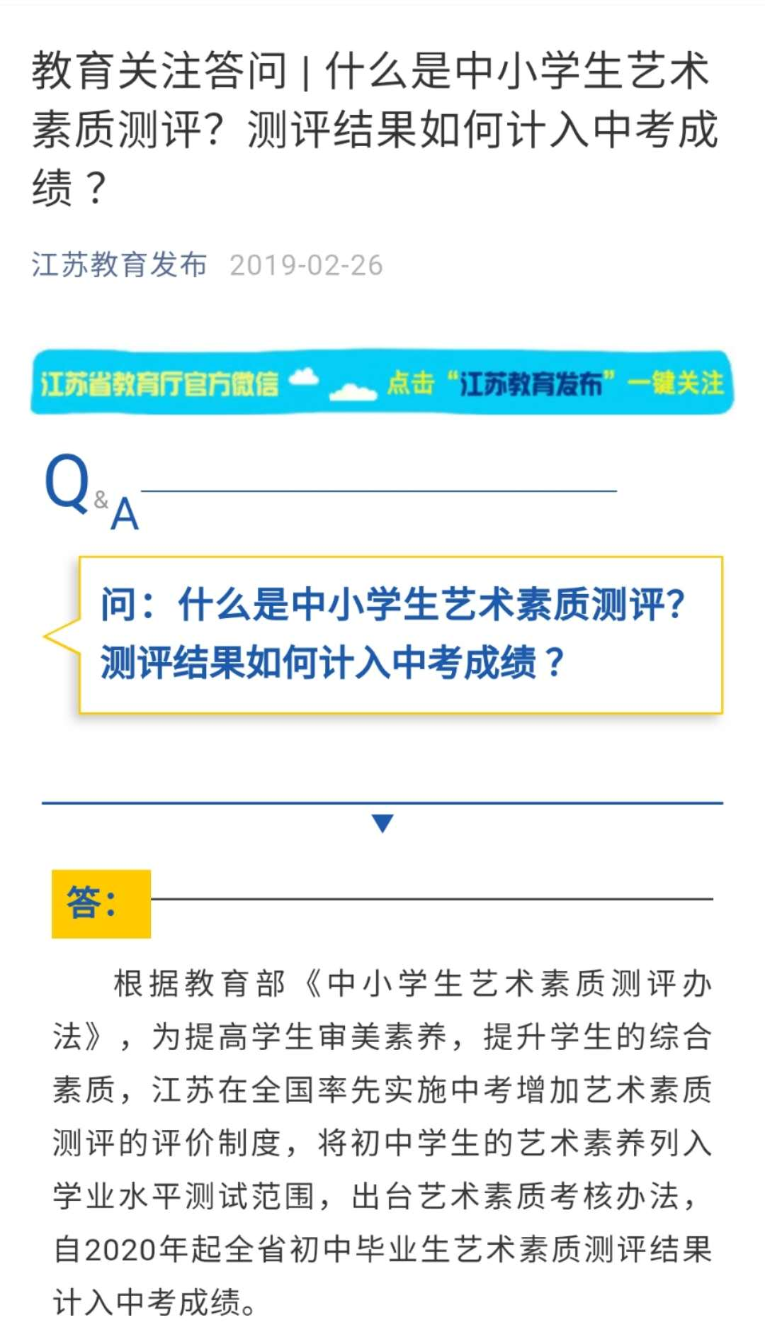 体育美育改革 如何考核、影响中考是关键 截止目前,对于此次中考改革,网上众说纷纭,那么,此次改革的关键点究竟是什么? 关于体育: 事实上,一直以来,国家就非常重视体育,体育也早已进入中考。此次关于体育改革,关键点在于分数提升,与语数外同分值。 事实上,截止目前,也有不少省市已经对体育分值进行了提升,但除云南省外,均未达到语数外同分值。所以,未来体育如何进行考核,体育提升的分数成为关键。 关于美育 此次中考改革,毋庸置疑的是,“将美育纳入中考”成为最引人关注的一点。 无可否认,音乐与美术纳入中考,会在一定程度上增加孩子们的艺术修养,陶冶孩子们的情操,但是音乐和美术要如何考核,分数如何计入中考或影响中考,成为了该政策实施的难点。 此次改革走向如何? 来看看部分省市的实施情况 此次改革究竟走向如何?我们先来看看目前已经实施政策改革的试点省市,他们是如何进行体育和美育改革的?他们的考核方式是什么?如何计入中考? 关于体育: 从今年开始,云南省已将体育中考与语文、数学、外语同分,均为100分。此次改革将于2020年秋季新学期(初一)开始实施。 关于美育 济源市和许昌市分别自2008年、2020年起将音乐、美术纳入中招考试,考试形式以技能展现为主。 只要学习好日常的音乐、美术课程,就能取得好成绩。 根据济源产城融合示范区教育体育局关于做好2020年初中毕业升学体育音乐美术考试的通知。 在音乐上,视唱为必考项目,选考项目为考生根据自己特长从“声乐、器乐、舞蹈”中任选一项。 1.必考项目(视唱): 按照《义务教育音乐课程标准》对“识读乐谱”的要求,创作8小节以内、难度适中的简谱旋律,形成题库,考生现场抽取一条进行测试。要求音准、节奏正确。 2.选考项目 (1)声乐:从中外优秀艺术歌曲、传统民歌、戏曲唱段中自选一首现场演唱进行测试。要求歌曲内容积极向上,考生能完整地演唱曲目,不跑调,吐字清晰,音乐表现力较好。时间在2-5分钟,不得超时。无伴奏演唱。 (2)舞蹈:舞种不限,现场表演自选舞蹈片段或组合一个。要求表演连贯、完整,具有一定的节奏感和协调性,舞蹈风格把握准确,具有一定的艺术表现力。时间在2-5分钟,不得超时。自备服装和音乐(限光盘、U盘),也可采用无伴奏表演。 (3)器乐:乐器和曲目自选,考生可现场演奏一首作品或代表自己水平的音乐片段。要求能流畅演奏旋律,具有正确的演奏方法、演奏姿势和演奏状态,能较好地体现乐曲的内容与风格,具有较强的艺术表现力。时间在2-5分钟,不得超时。除钢琴外,其他乐器自备,无伴奏演奏。 在美术上,手绘线条为必考项目,选考项目为考生根据自己特长从“绘画、中国画或毛笔书法”中任选一项。 1、必考项目 根据提供的学习或生活用品图片,用手绘线条来表达一幅画面。要求:画面清晰、主题形象突出、线条流畅,表达的图像能较真实再现物体的立体形象,并符合透视规律。 2.选考项目 (1)绘画:创作一幅绘画作品,主题不限。可采用的表现形式有:速写、漫画、明暗表现(素描)、色彩表现、装饰画。创作作品要求内容健康向上、构图完整、主题突出、富有想象力和艺术表现力。 (2)中国画:创作一幅中国画作品,主题不限。创作作品内容要求健康向上,不署名不签章。考试用纸限四尺三开生宣纸(考场提供),其他书画工具自带。 (3)毛笔书法:创作一幅毛笔书法作品,书体不限。创作作品内容要求健康向上,不署名不签章。内容要成句,正文字数不少于8个字,章法格式合理;考试用纸限四尺三开生宣纸(考场提供),其他书画工具自带。 ▲滑动查看全文 江苏 分数折合为ABCD等级 B等成为评测分界线 据江苏教育发布消息,江苏自2020年起全省初中毕业生艺术素质测评结果计入中考成绩。 测评方案由各设区市具体制定,测评指标体系由基础指标、学业指标和发展指标三部分构成。各项指标均有过程性评价和终结性评价。 过程性评价: 1、以学期为时间段,学校根据学生参加艺术课程学习、参与艺术课外活动、发展艺术特长的情况,对学生实施考核。 2、总分为100分,其中音乐、美术两科各50分。评价成绩60分以上(含60分)为合格,60分以下为不合格。 3、学生初中阶段参加各级教育行政部门组织的艺术活动情况可以作为艺术特长测评加分依据,艺术特长加分在初三下学期进行,在五个学期平均成绩基础上按照国家、省、市、区教育行政部门展演分别加5分、4分、3分、2分,校级展演加1分,总加分不得超过10分。社会艺术考级、非教育行政部门举行的艺术竞赛的证书和名次不能作为艺术特长测评及加分的依据。 终结性评价: 1、依据国家课程标准,以考试的形式检验学生应知应会的学科知识与学科技能。 2、终结性评价由市教育局统一命题,区教育局组织实施,以初中现行教材的教学内容为测评范围,考核学生音乐、美术的基本素质和学科能力。 3、终结性评价采用机考的形式,满分100分,其中音乐、美术两科各50分。考试成绩60分(含60分)以上为合格,60分以下为不合格。 ▲滑动查看全文 测评成绩运用: 1.艺术素质测评成绩满分为100分,其中过程性评价成绩(五个学期的平均分)占60%、终结性评价成绩占40%。两项成绩相加结果按分数折算成A、B、C、D四个等级,90分以上为A等,75—89分为B等,60—74分为C等,60分以下为D等。C等及以上为合格,D等为不合格。 