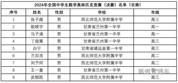 2024年第40届全国中学生数学联赛省队名单(甘肃)