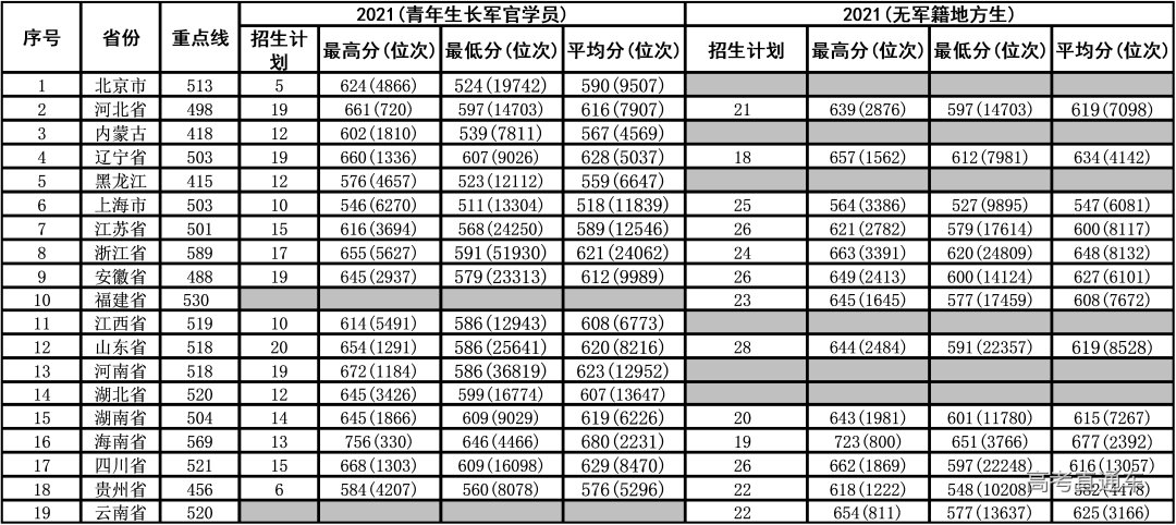今天车车为大家整理了面向高中生招生的军队院校近3年录取分数线(2021年分数已更新),供家长和考生参考。