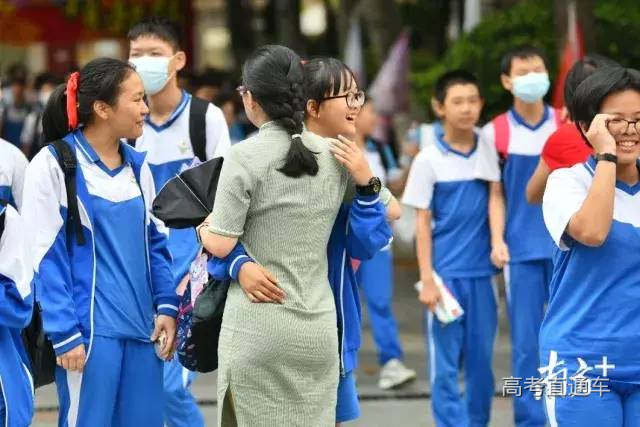 考试结束后,考生们显得十分放松,满脸笑容走出考场。