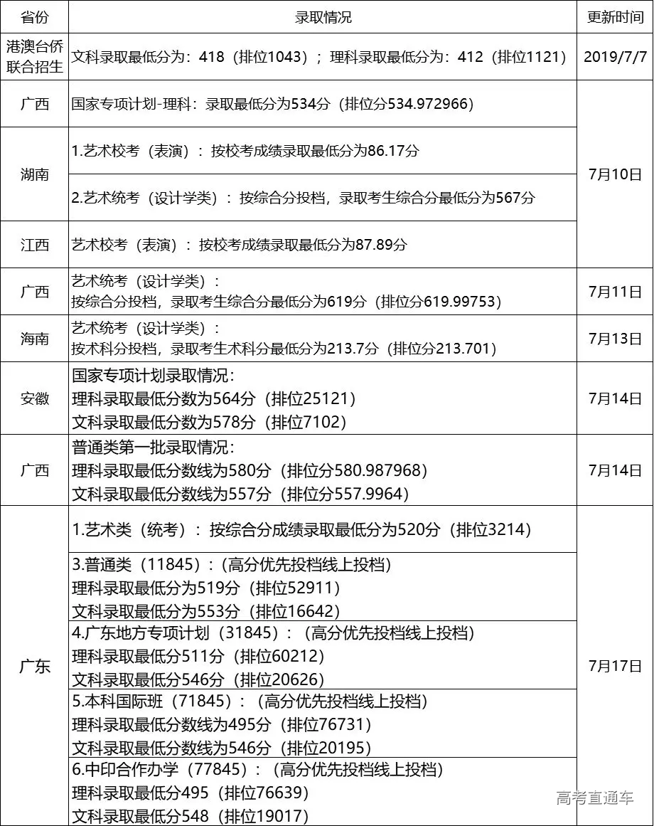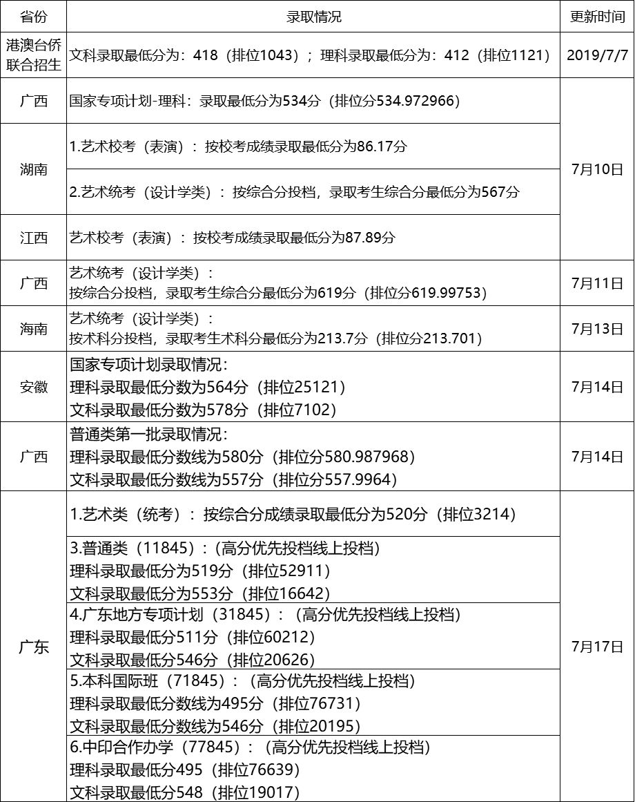 2.录取情况公告中关于各省相关批次的录取情况在不断更新中,已经出现的省份与批次,表示相关的录取信息已经上传。