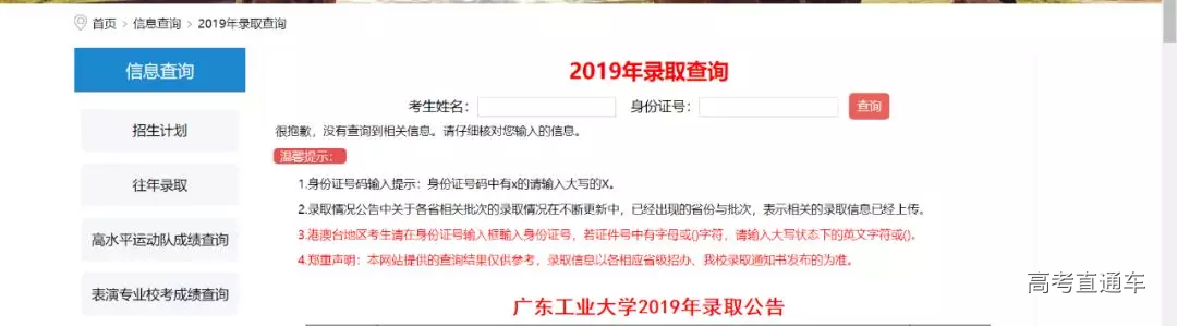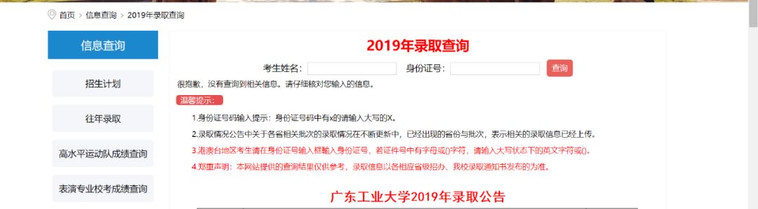 迄今为止,报考广东工业大学的高分优先投档线上被录取的考生已经全部可以查询,高分优先投档线下的出档考生,录取结果将于近日提供查询。