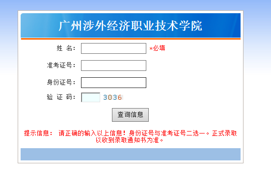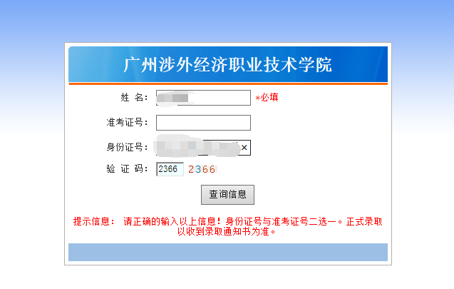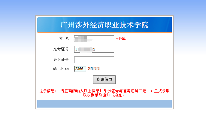 3.1查询不到信息:a.姓名、准考证号等信息填写有误; b.未被我校录取