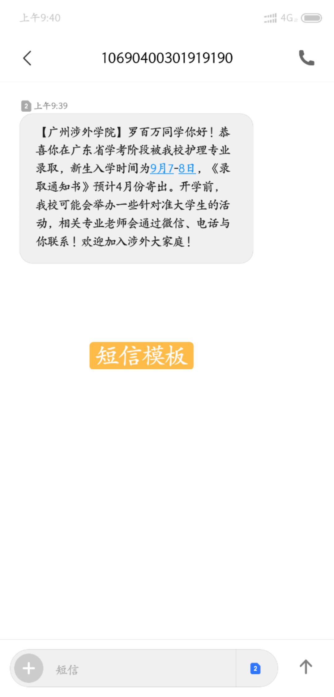 二、广州涉外经济职业技术学院将使用以下号码,发送录取短信。