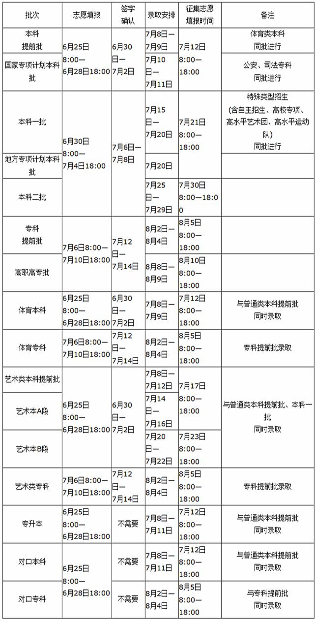7. 本科一批、本科二批和高职高专批均实行平行志愿,其中本科一批和高职高专批可填报1-6个高校志愿,本科二批可填报1-9个高校志愿,每个高校志愿可填1-5个专业和是否同意调剂专业。普通类本科提前批、国家专项计划本科批、地方专项计划本科批和专科提前批(除艺术外)第一志愿设1个高校志愿,第二志愿设4个高校平行志愿。艺术类分艺术本科提前批、艺术本科A段、艺术本科B段、艺术专科。每批次每段可按顺序填报2个高校志愿,每个高校志愿可填报1个专业和是否同意调剂(专业)。