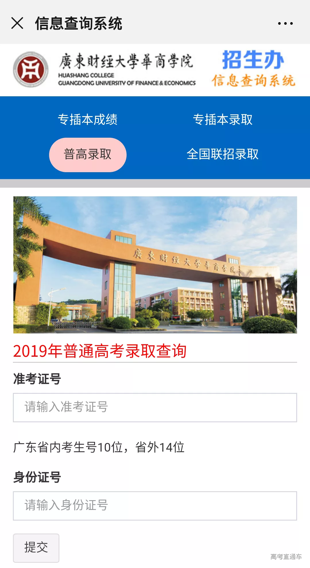7月22日下午14:00,全国联招(港澳台侨)、台湾免试生、广东省普通类和美术类新生可在学校录取查询系统上查询到本人录取通知书的EMS单号、邮寄地址等信息,以便同学们及时跟踪录取通知书的动向。